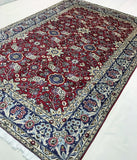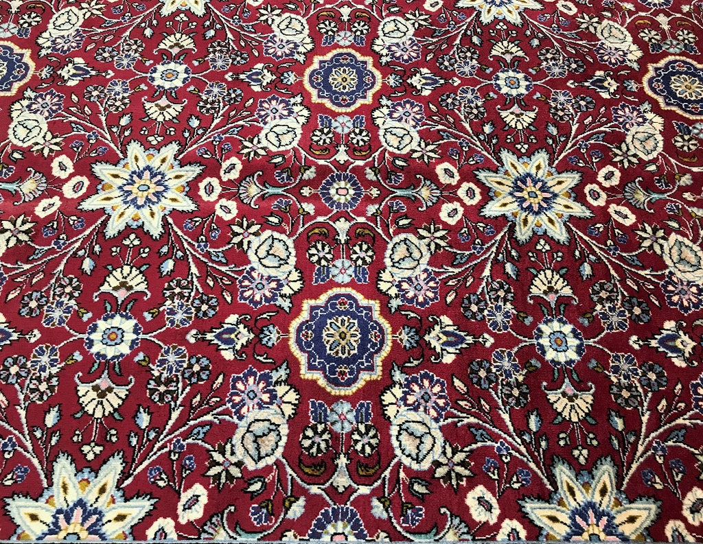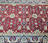 Full Room Size Authentic Handmade Persian Yazd Carpet. Above All It Is Hard To Get This Quality Hand Made Rug In Larger Sizes. It Also Has A Pure Lamb’s Wool Pile On Cotton Base. Red, Indigo Blue, Aqua With Hint Of Yellow Tone Dyed Using Traditional Methods, Fine Quality Piece From City Of Yazd.