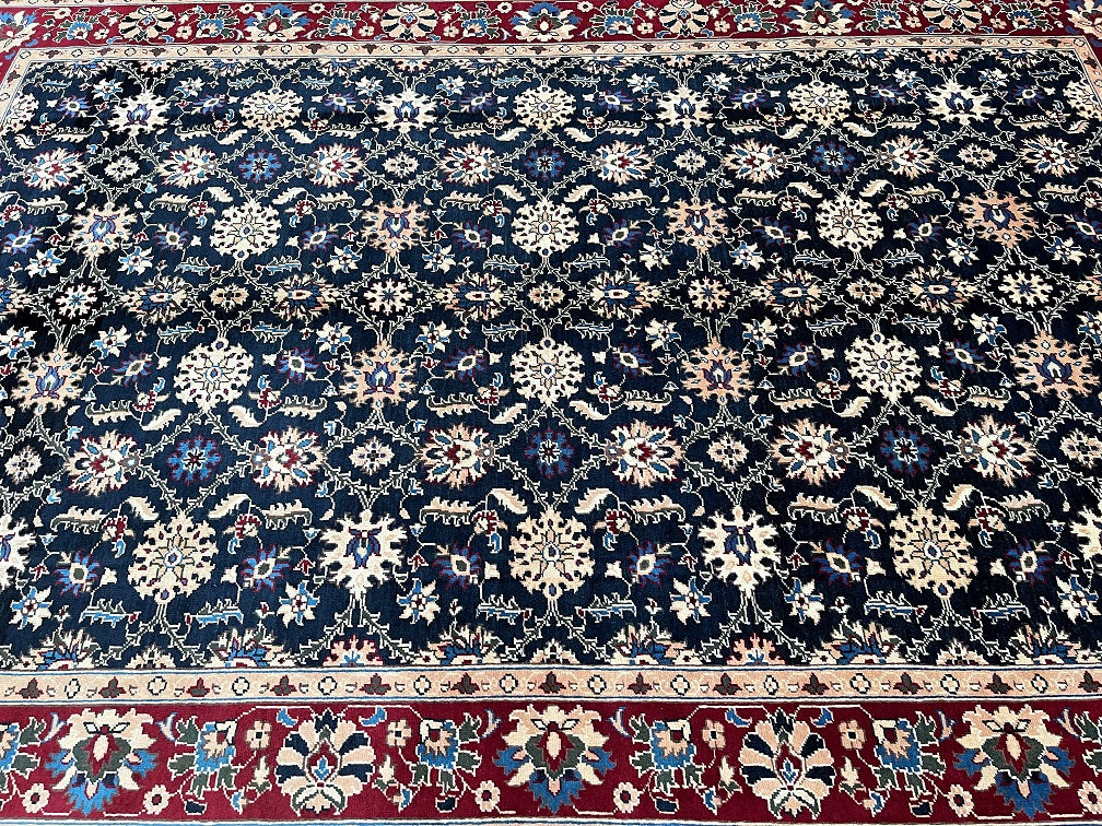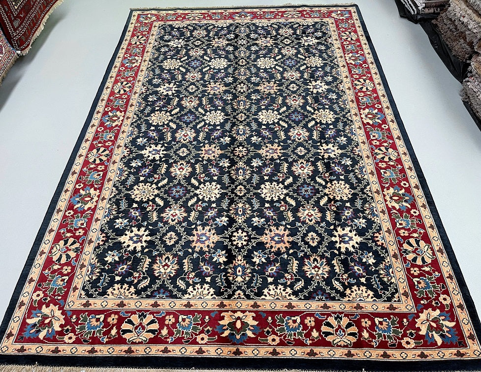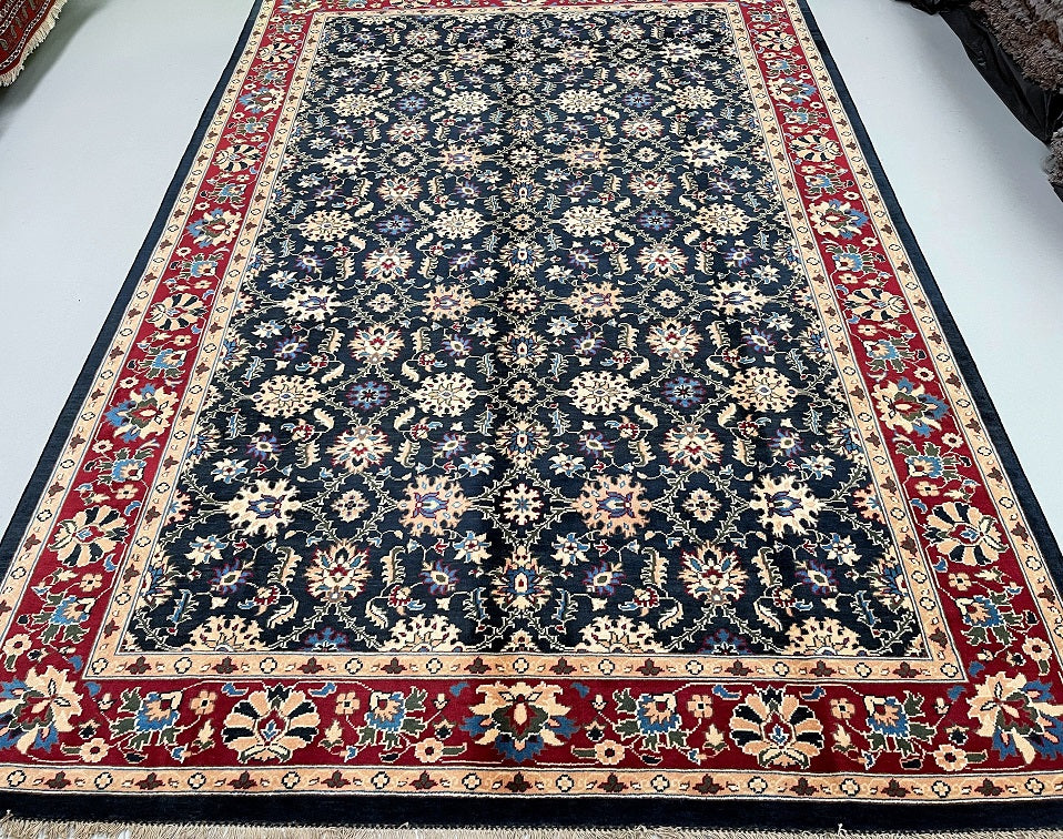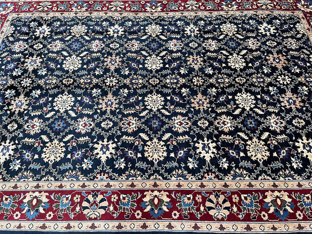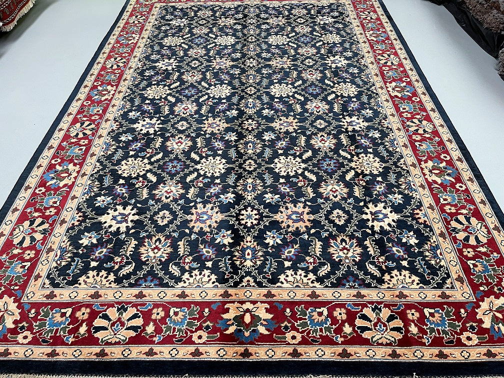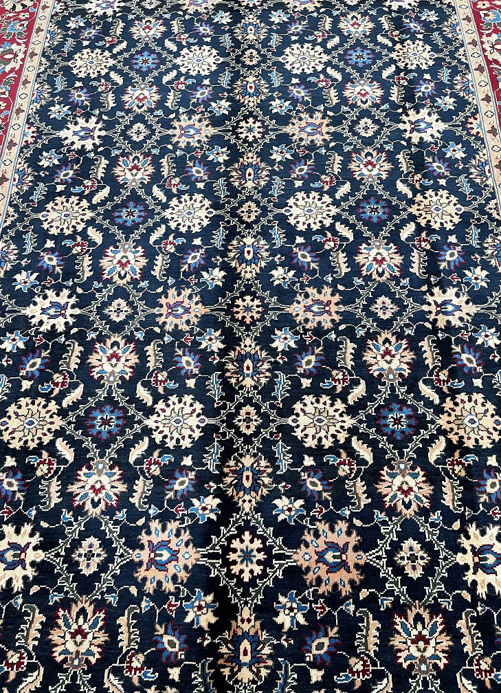 Superfine Full Room Size Authentic Handmade Afghan Roshnai Rug. Above All It Is Pure Hand Spun Wool Pile On Cotton Base. Indigo Blue, Pistachio, Burgundy And Beige Tone Dyed Using Traditional Methods.