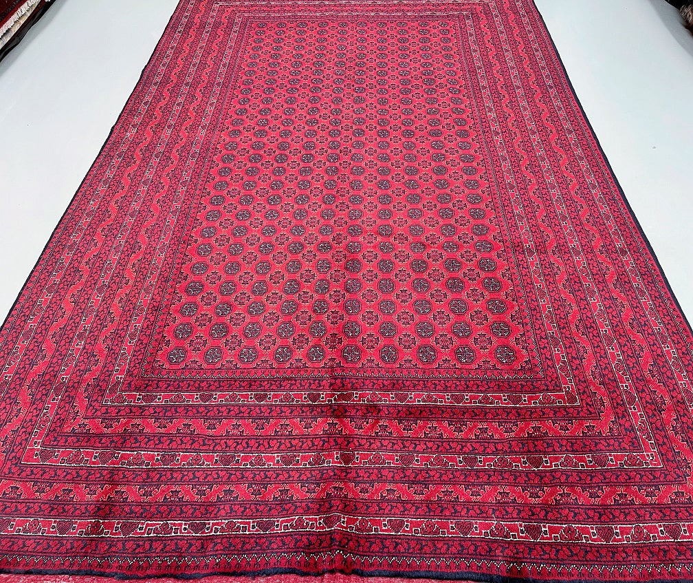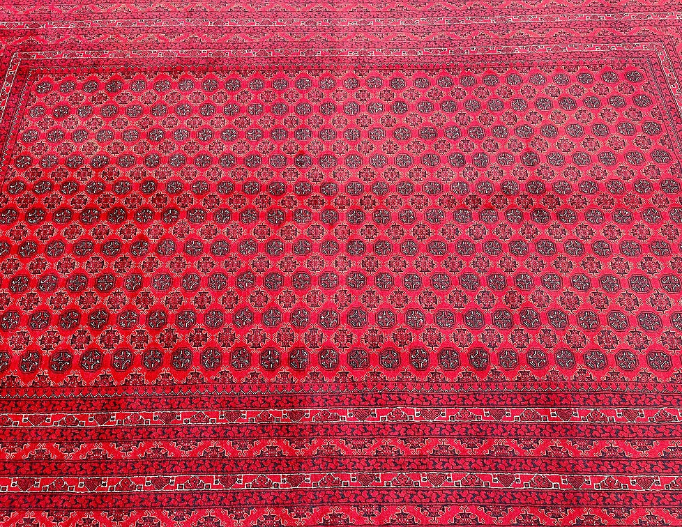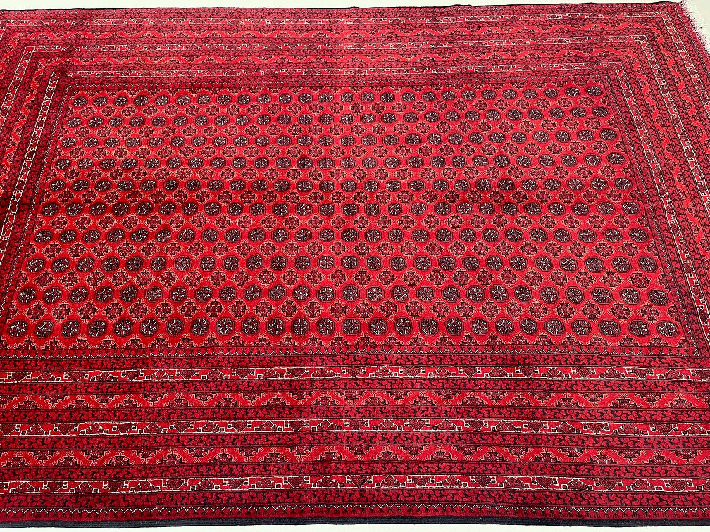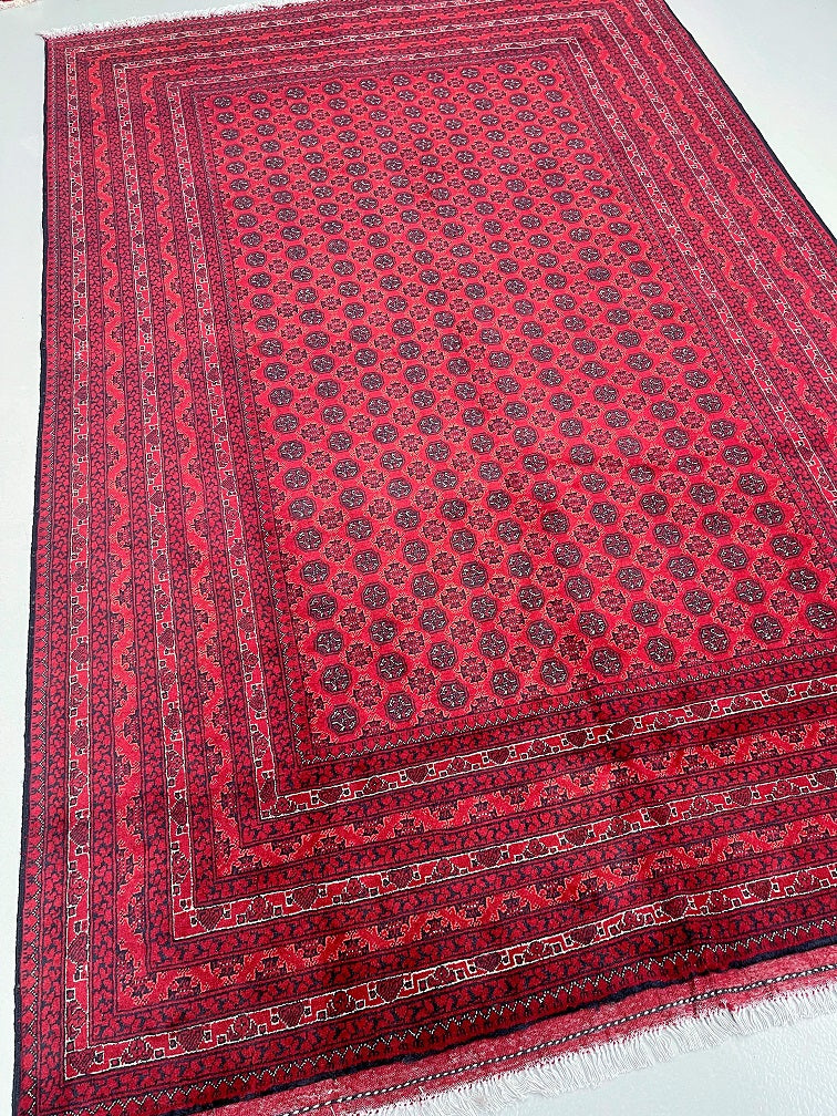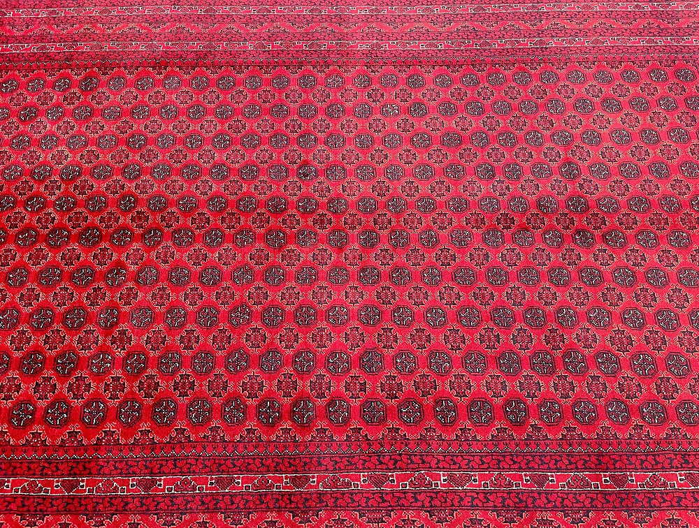 Superb Full Room Size Genuine Handmade Afghan Mazar Sharif Rug. Above All It Is Pure Hand Spun Wool Pile On Cotton Base. It Also Has Rich Burgundy/Maroon Tone Dyed Using Traditional Methods.