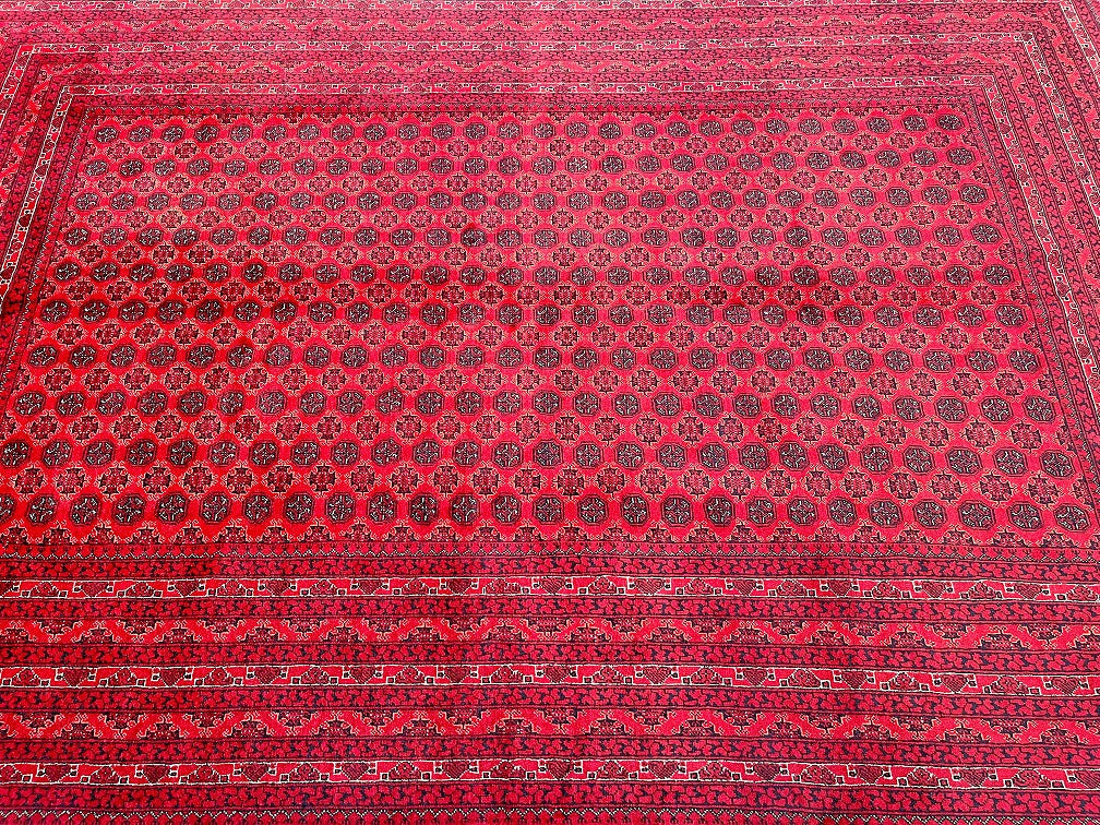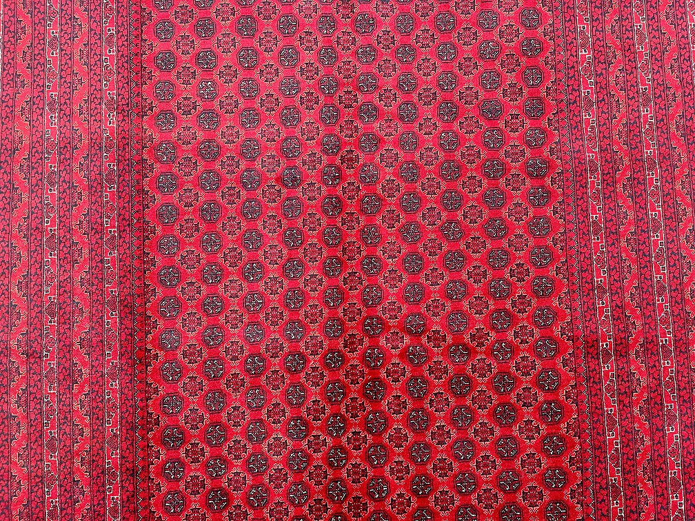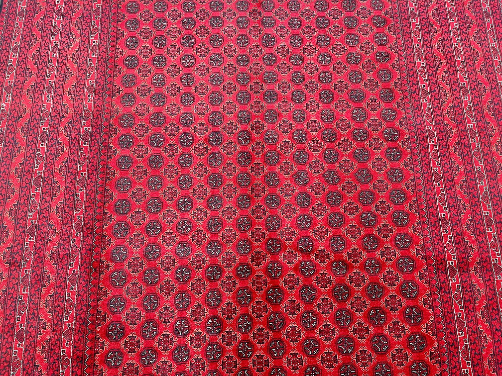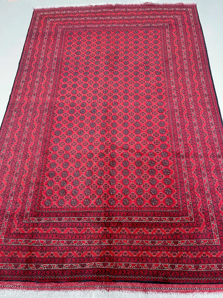 Superb Full Room Size Genuine Handmade Afghan Mazar Sharif Rug. Above All It Is Pure Hand Spun Wool Pile On Cotton Base. It Also Has Rich Burgundy/Maroon Tone Dyed Using Traditional Methods.