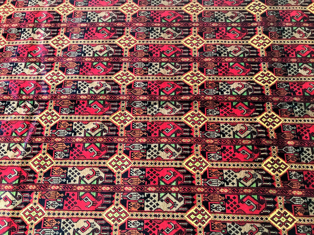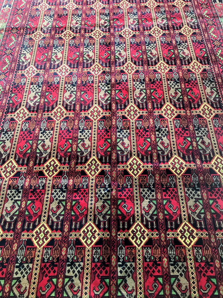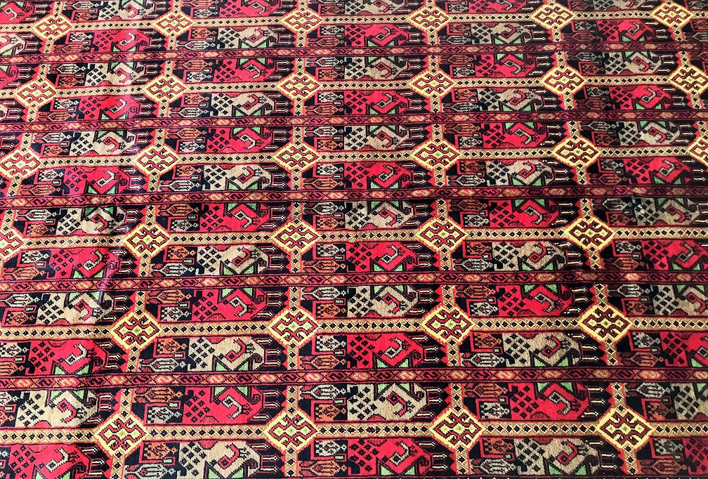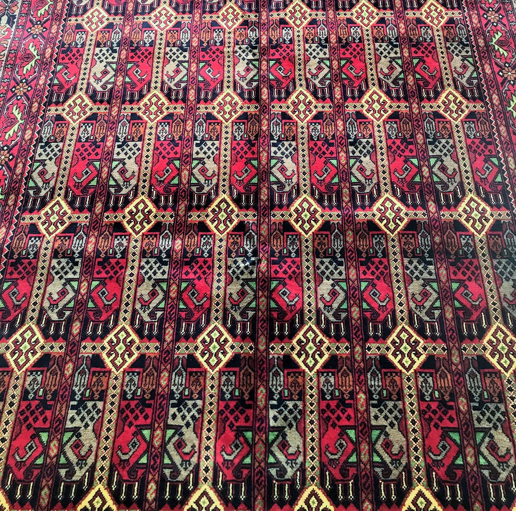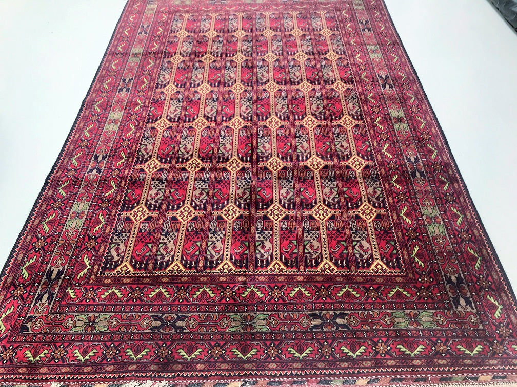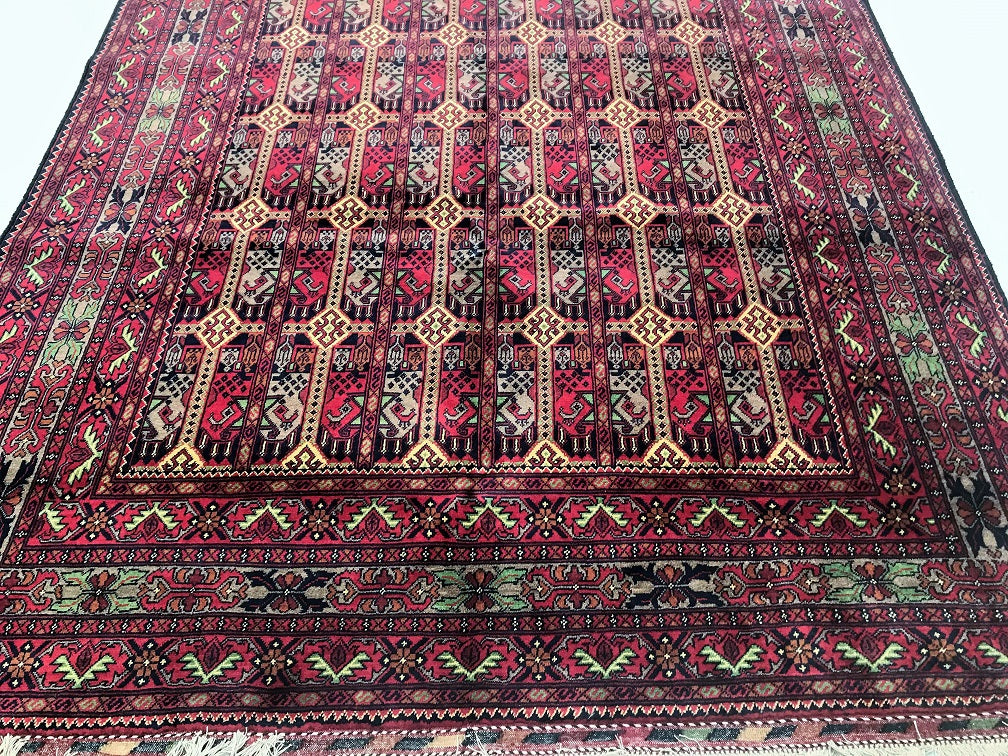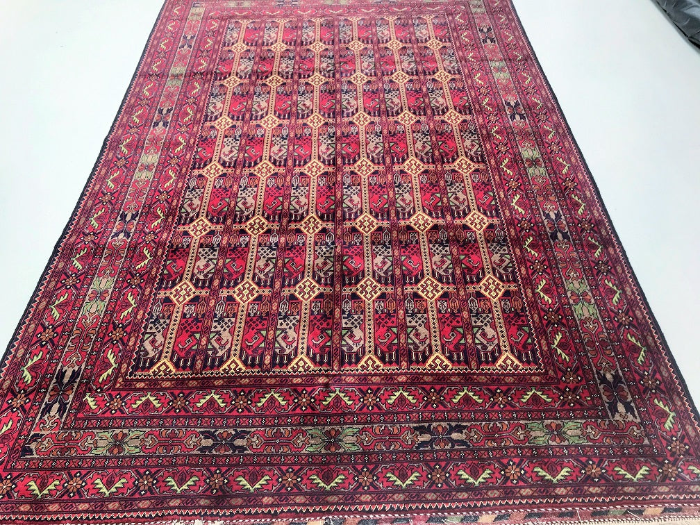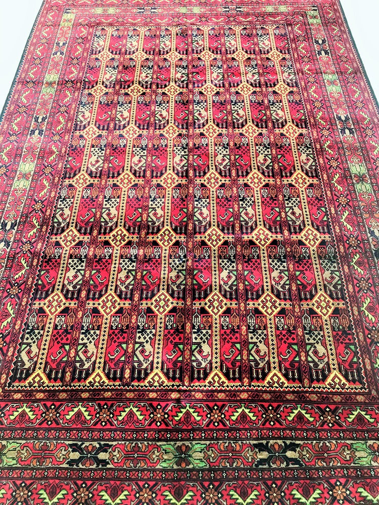 High End Full Room Size Hand Knotted Beljick Afghan Rug. Above All Beljick Is The Finest Quality Of Afghan Rugs In The Market. It Has A Pure Hand Spun Wool Merino Wool Pile On Cotton Base. It Also Has A Rich Burnt Terracotta/Burgundy and Indigo Blue Tone Dyed Using Traditional Methods.