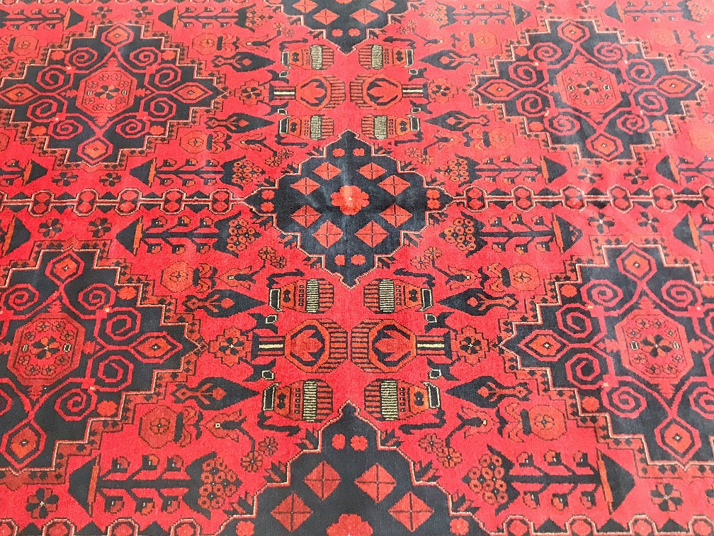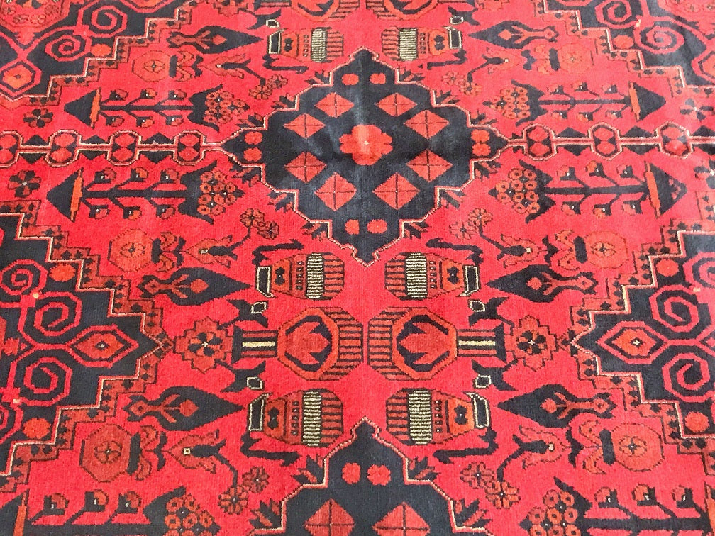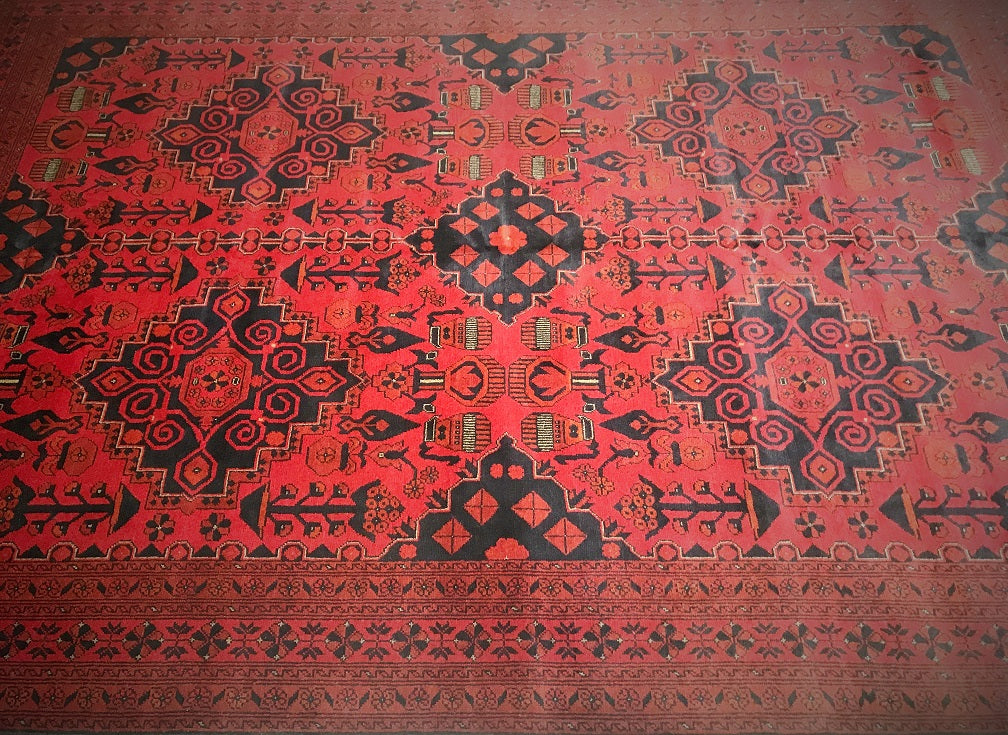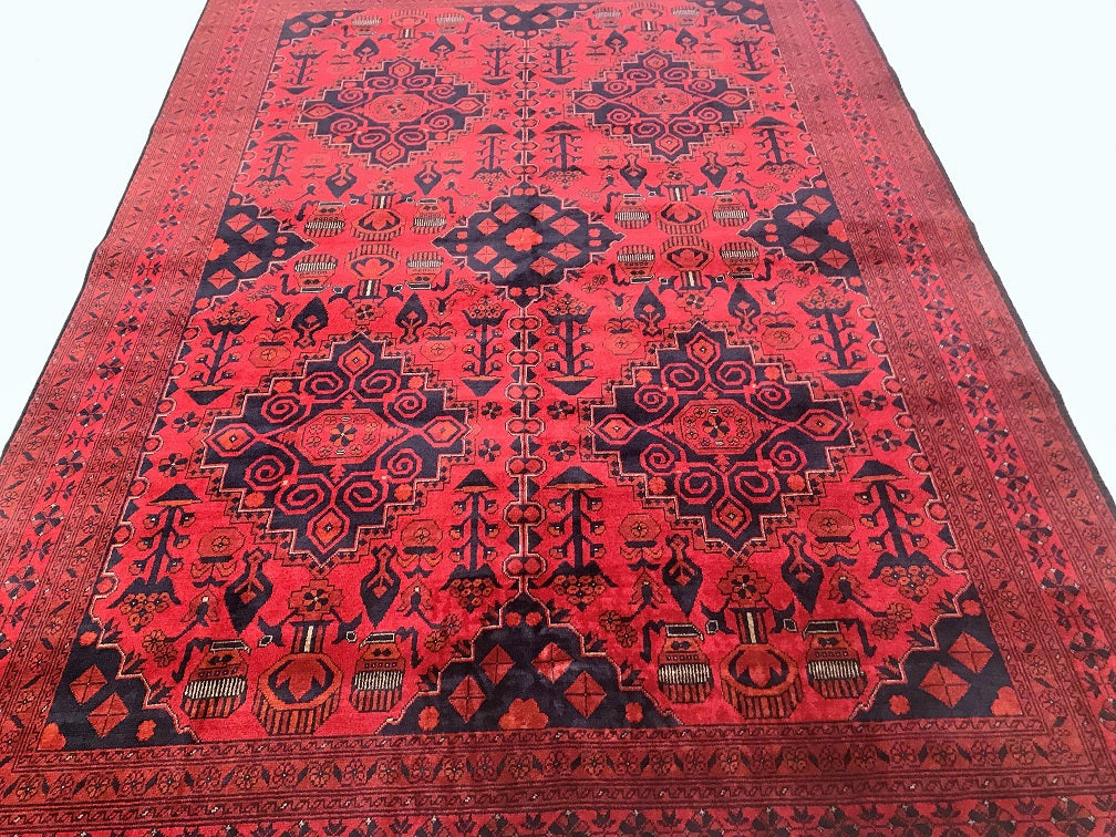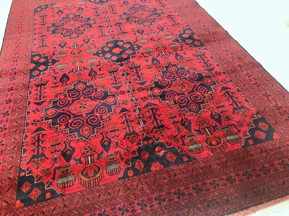 Exquisite Full Room Size Hand Knotted Afghan Kunduz Rug. Above All It Has A Pure Hand Spun Wool Pile On Cotton Base. It Also Has A Beautiful Burnt Terracotta/Maroon Tone Dyed Using Traditional Methods.