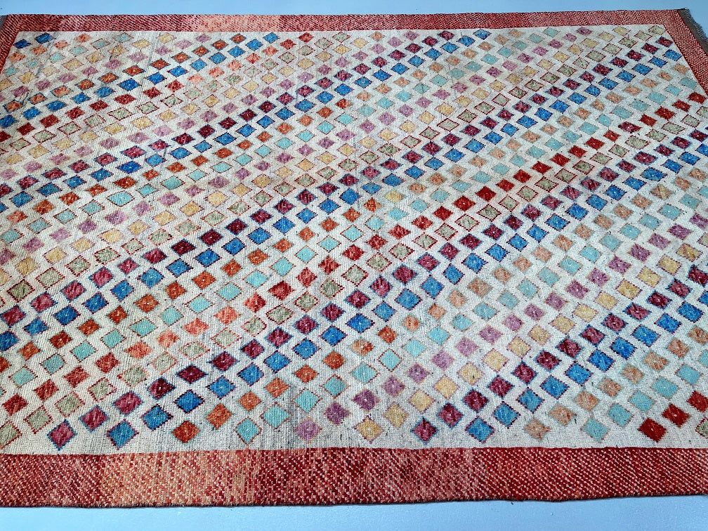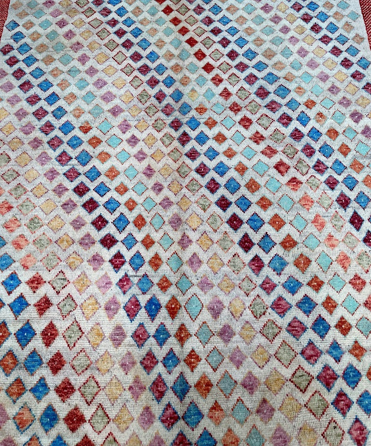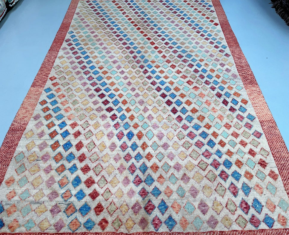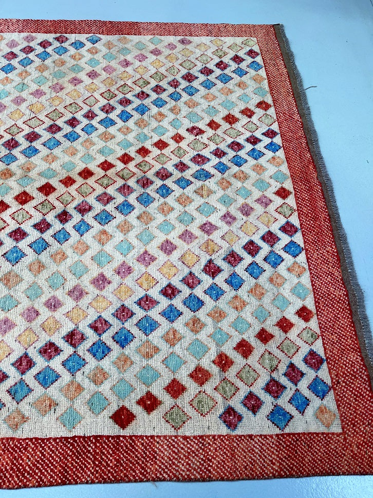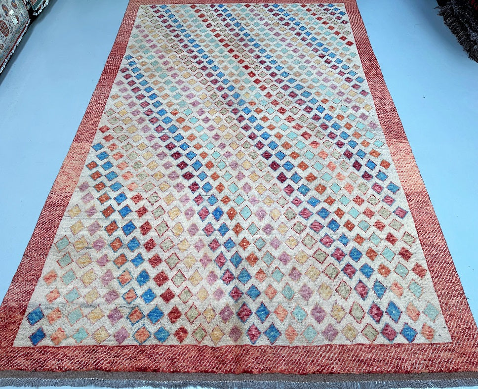 Full Room Size Moroccan Style Hand Knotted Afghan Gabbeh Rug. Above All It Has A Wool Pile On Wool Base. Multi-Color Tone Dyed Using Traditional Methods. Last of True Woven Nomadic Art.