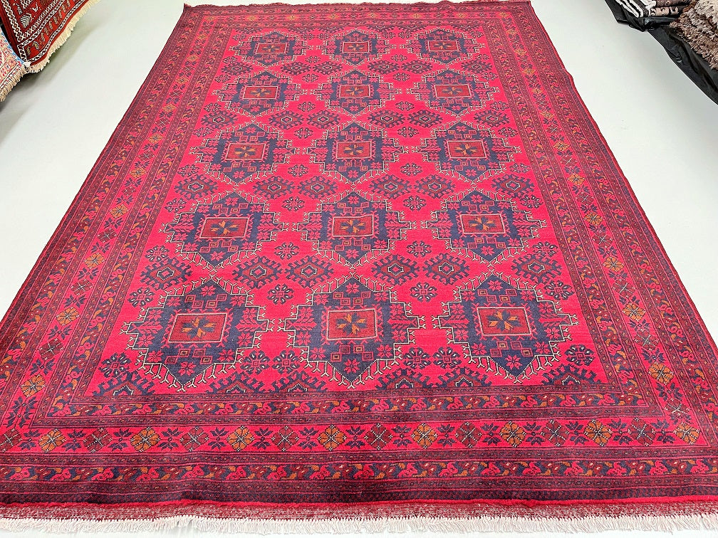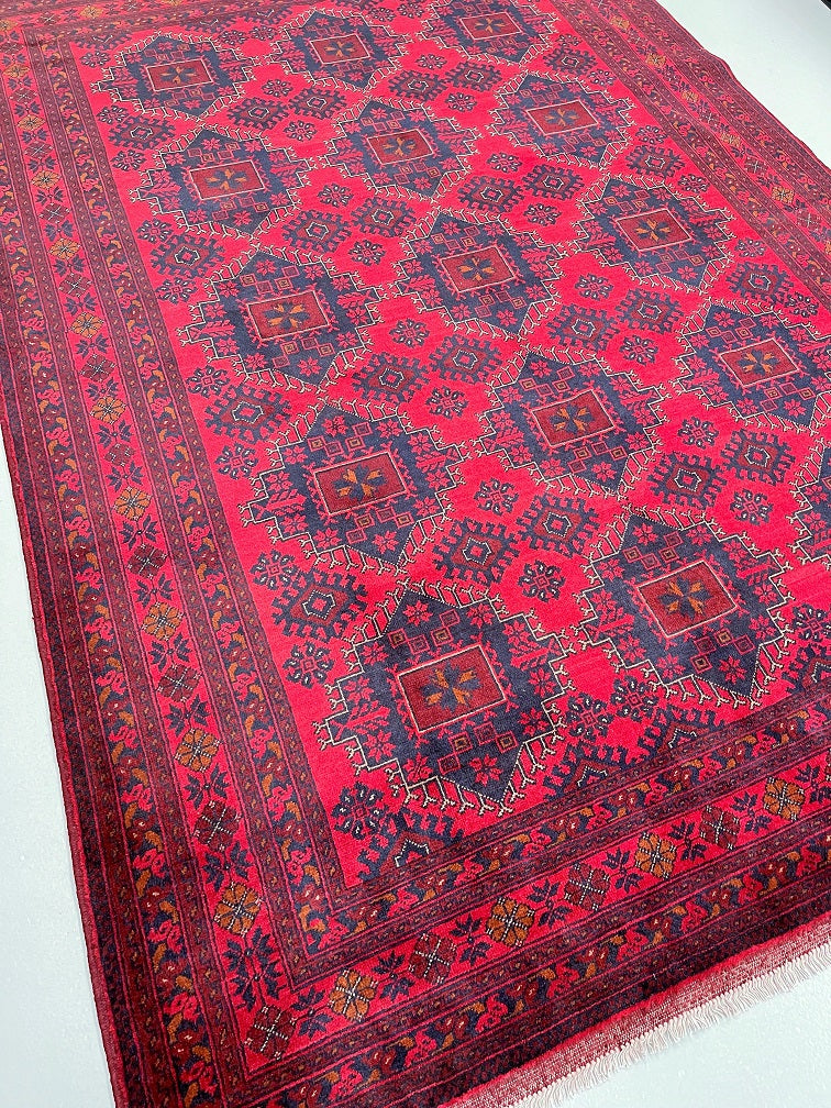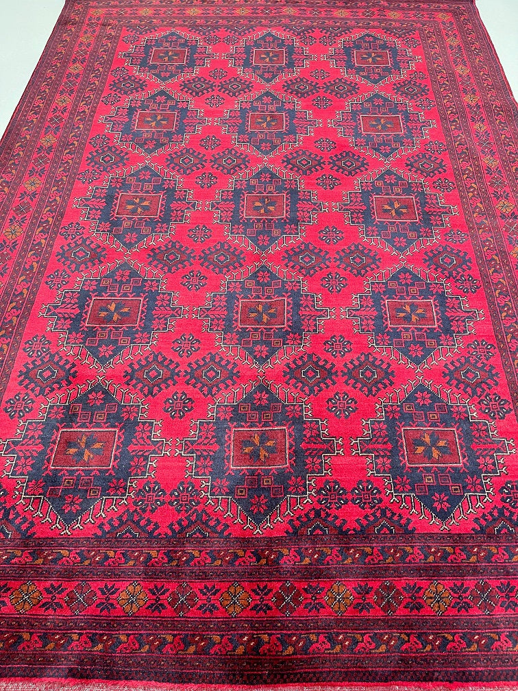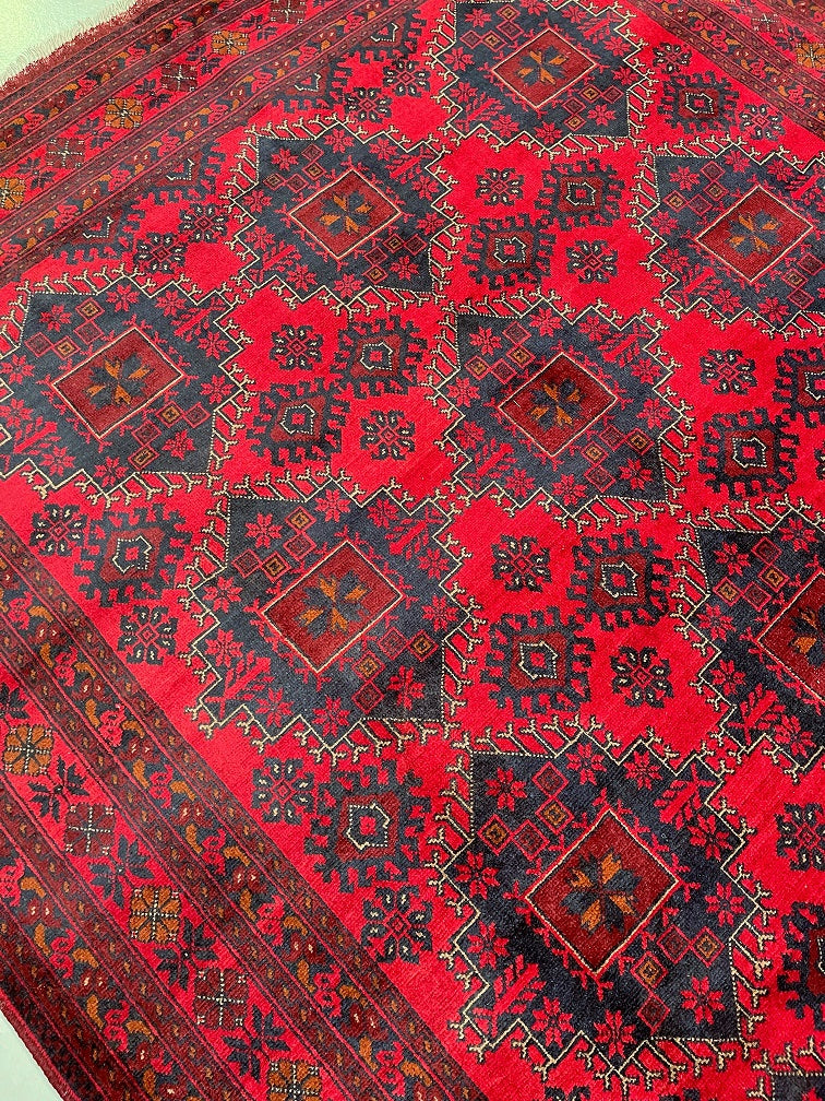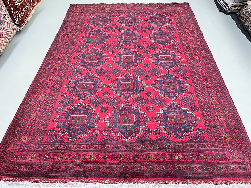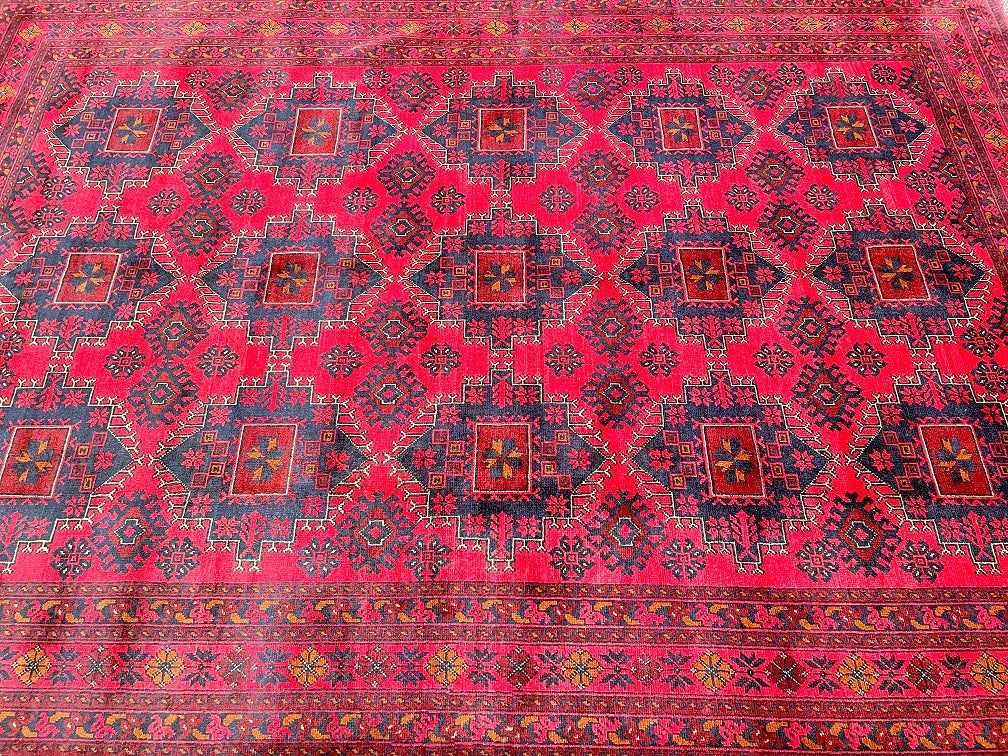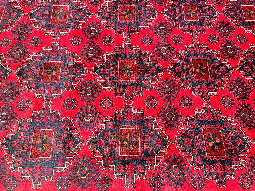Discounted Full Room Size Nomadic Hand Knotted Afghan Khal Rug. Above All It Has A Pure Hand Spun Wool Pile On Cotton Base. It Also Has a Burgundy/ Burnt Terracotta Tone Dyed Using Traditional Methods.