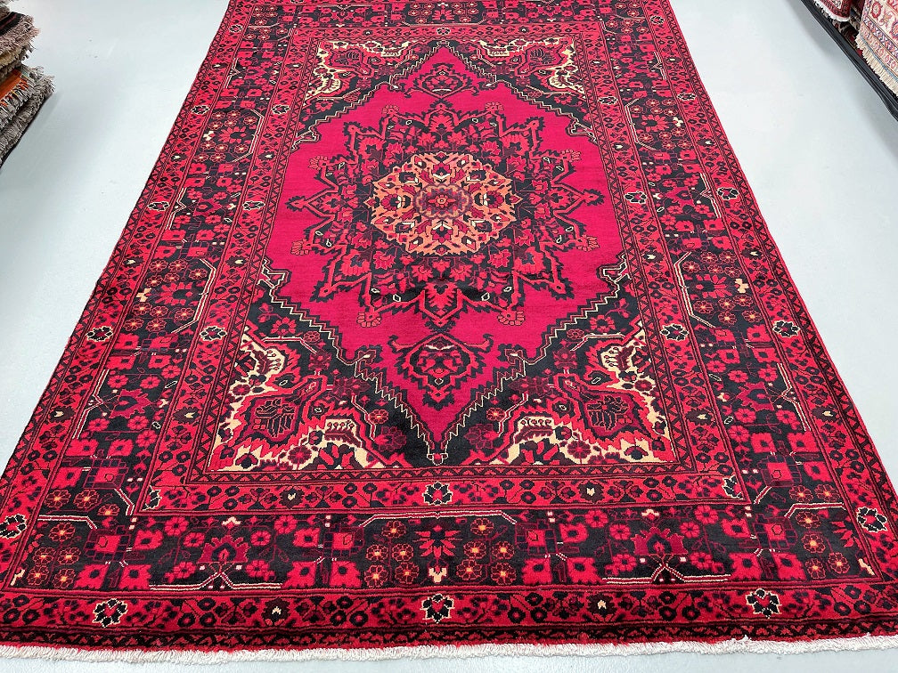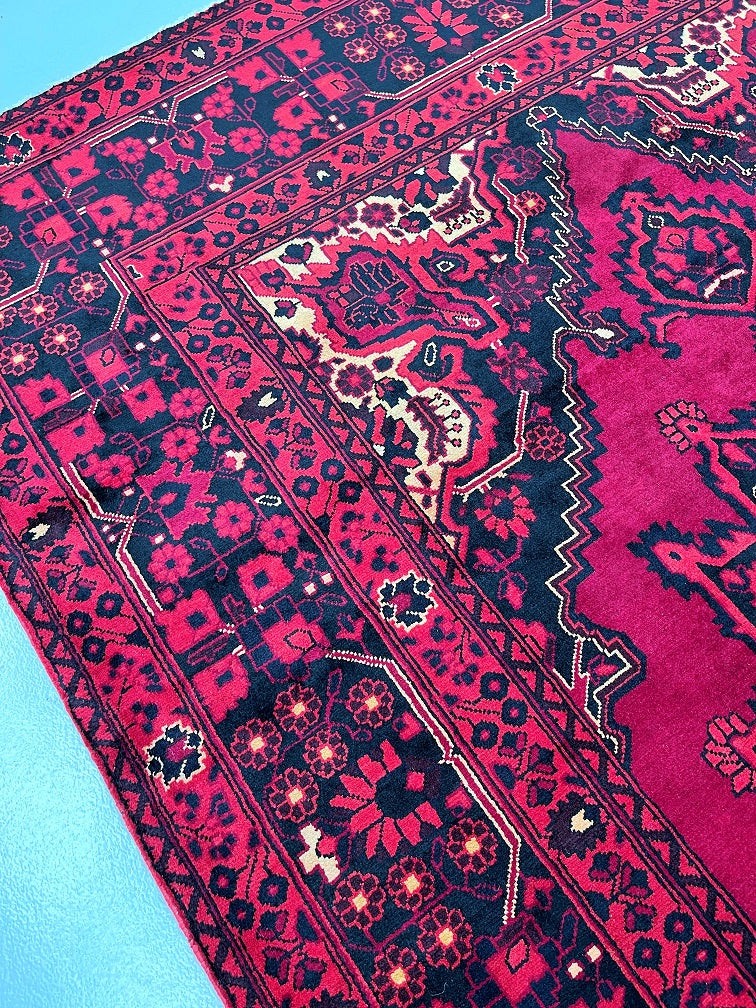 Full Room Size Authentic Handmade Tribal Persian Balouchi Rug. Above All It Has A Pure Hand Spun Wool Pile On Cotton Base. Deep Maroon Red Tone Dyed Using Traditional Methods.