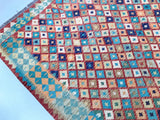 Decorative Full Room Size Handmade Afghan Waziri Kilim Rug. Above All It Has A Pure Hand Spun Wool Pile On Wool Base. Vibrant Tone Dyed Using Traditional Methods.