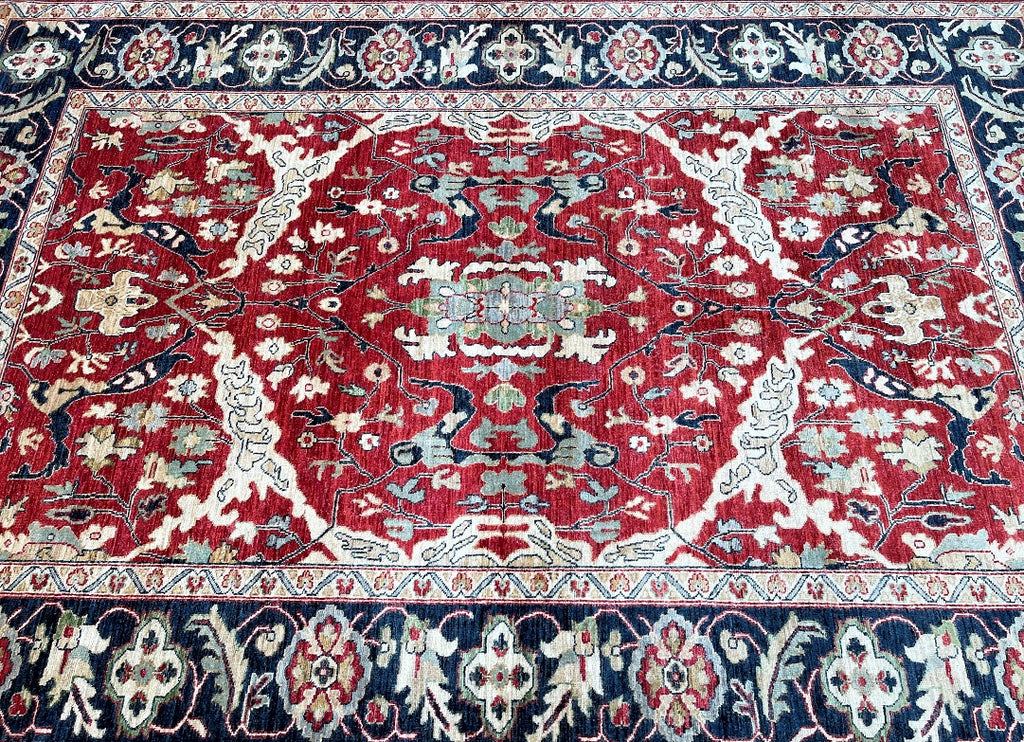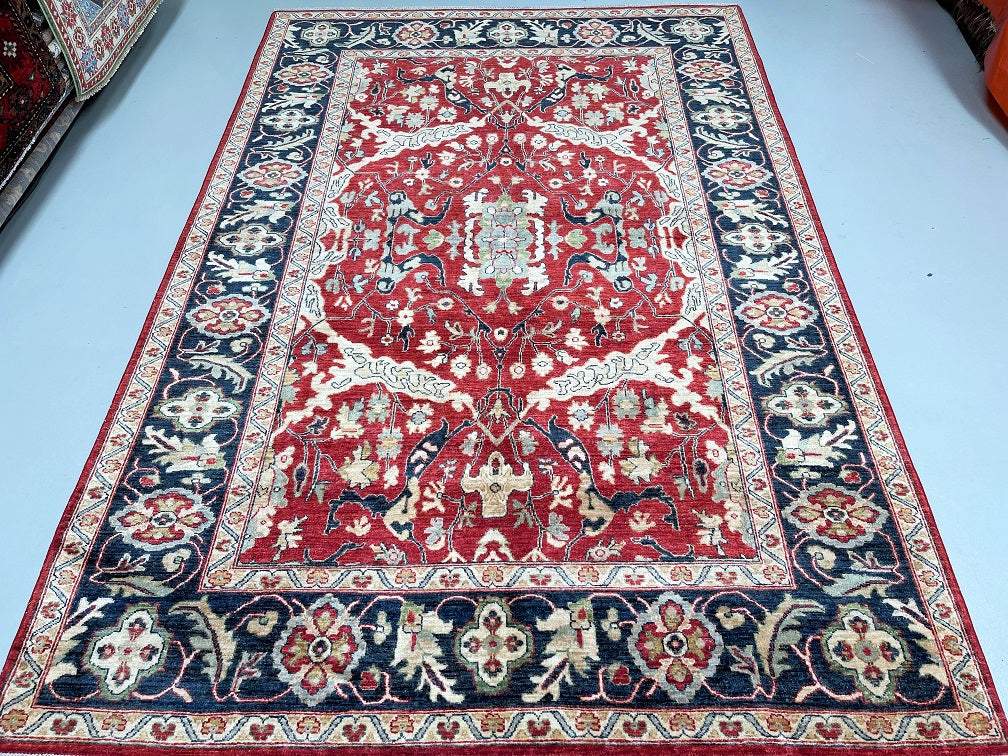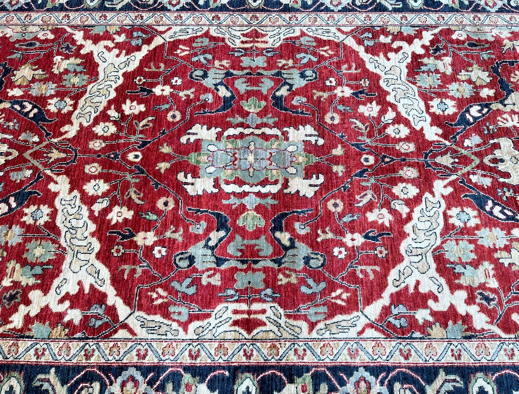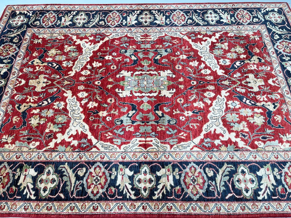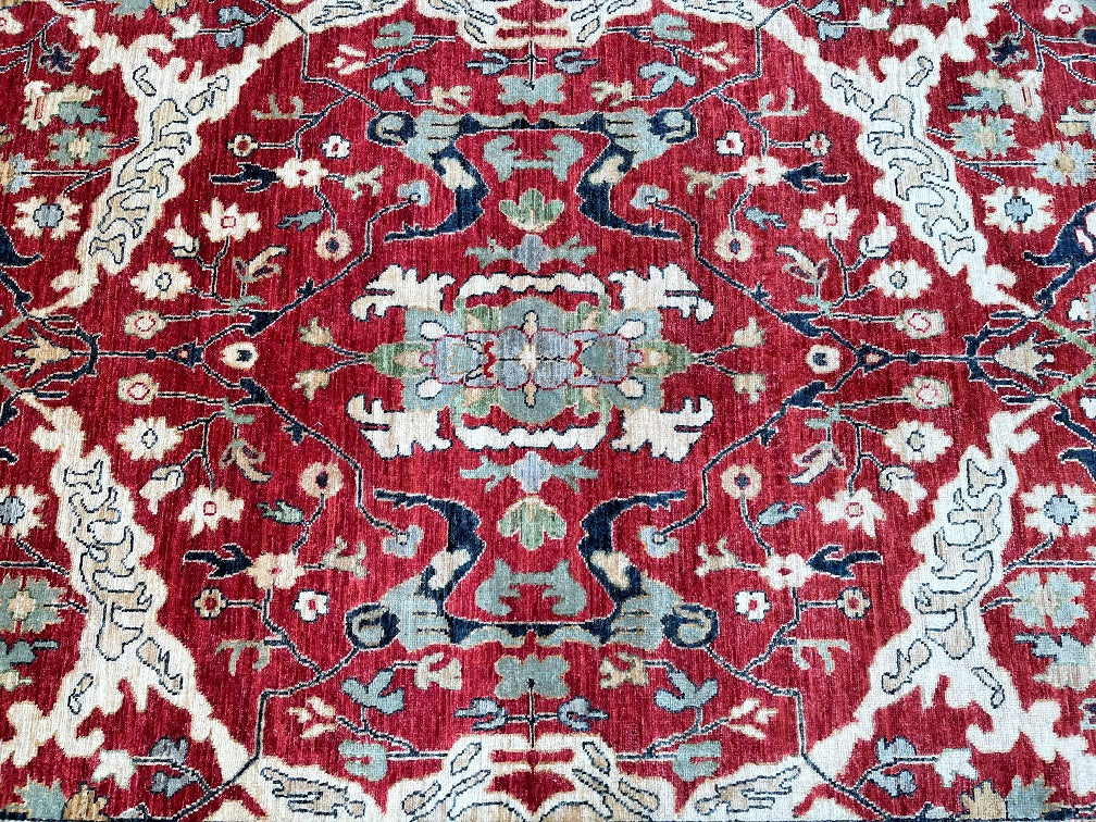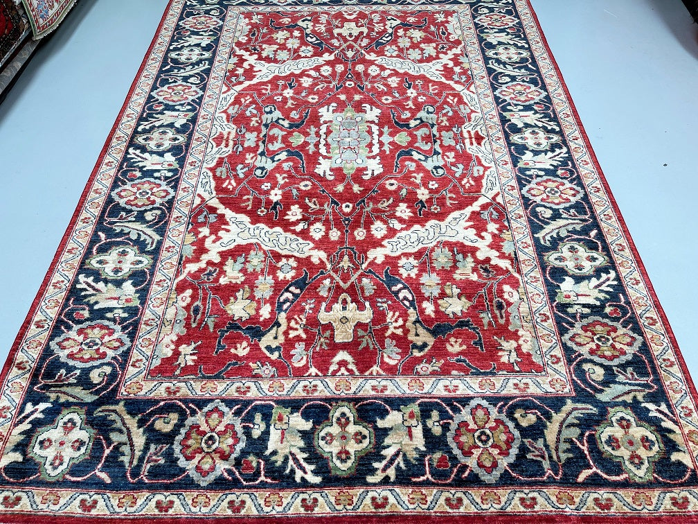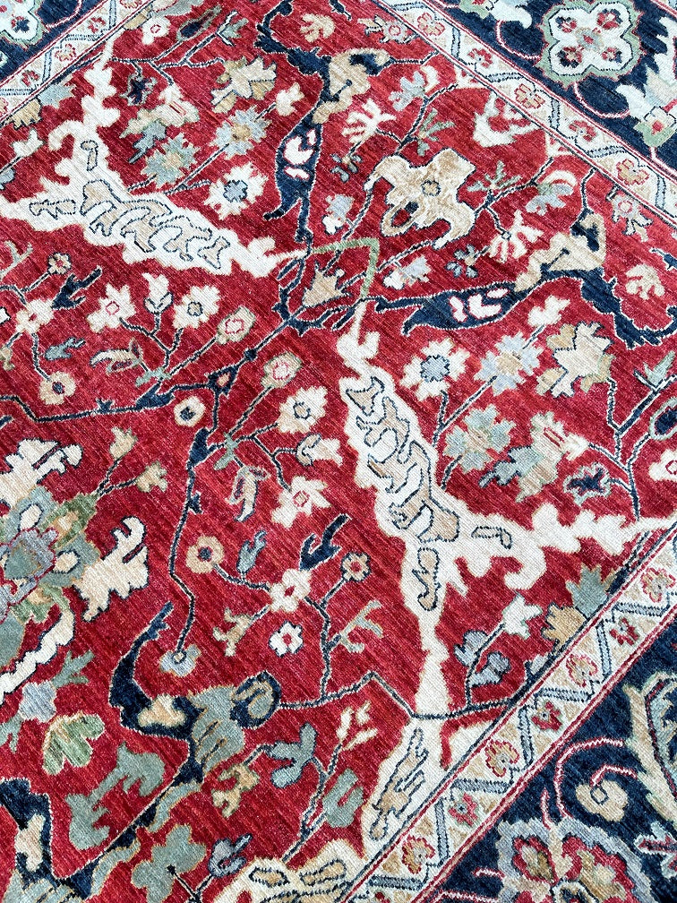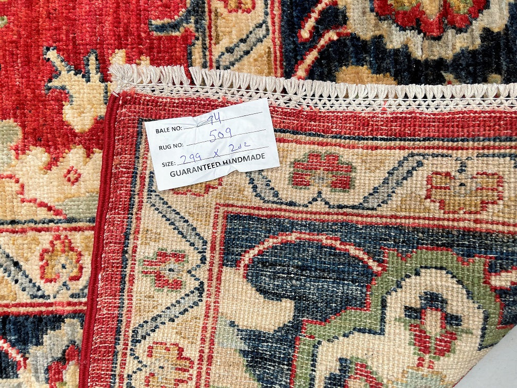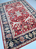 Full Room Size Genuine Hand Knotted Afghan Ziegler Chobi Rug. Above All It Is Pure Hand Spun Wool Pile On Cotton Base. Maroon Red, Green, Black/Indigo Blue And Beige Tone Dyed Using Vegetable Dyes. Last Of True Woven Nomadic Art.