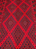 Speaking of design, this rug showcases a captivating decorative geometric diamond medallion tribal pattern, adding a unique and cultural flair to any room. It's important to note that the creation of this rug required the skilled hands of a nomadic weaver, who dedicated approximately 2-3 months to complete this Kilim rug. Hand-woven in Afghanistan, this rug carries the essence of its origin and the rich cultural heritage of its weaver.
