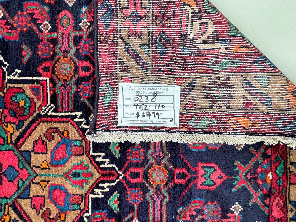 Free Shipping Australia Wide Offered! Certified Handmade Persian Hall Runner 462x110cm Authentic Hand Knotted Tribal Persian Malayer Wide Hall Runner. Above All It Is Hard Wearing & Durable Piece. It Also Has Pure Hand Spun Wool Pile On Cotto...