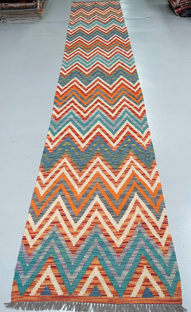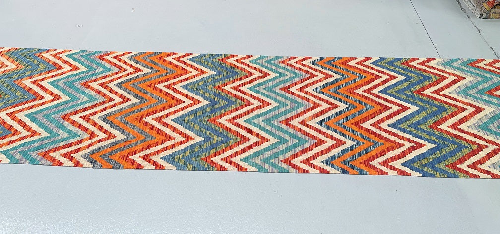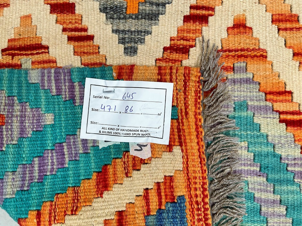 Certified Hand Woven Afghan Kilim Hall Runner 471x86cm