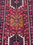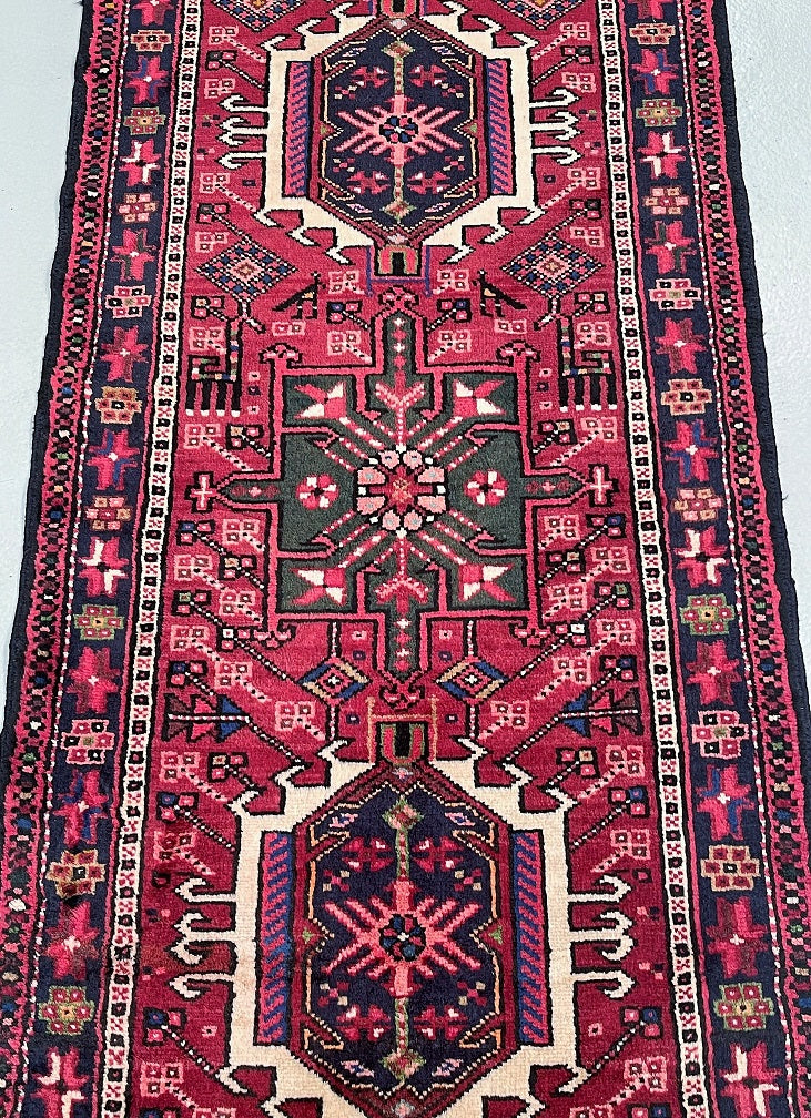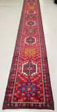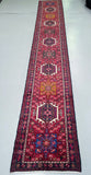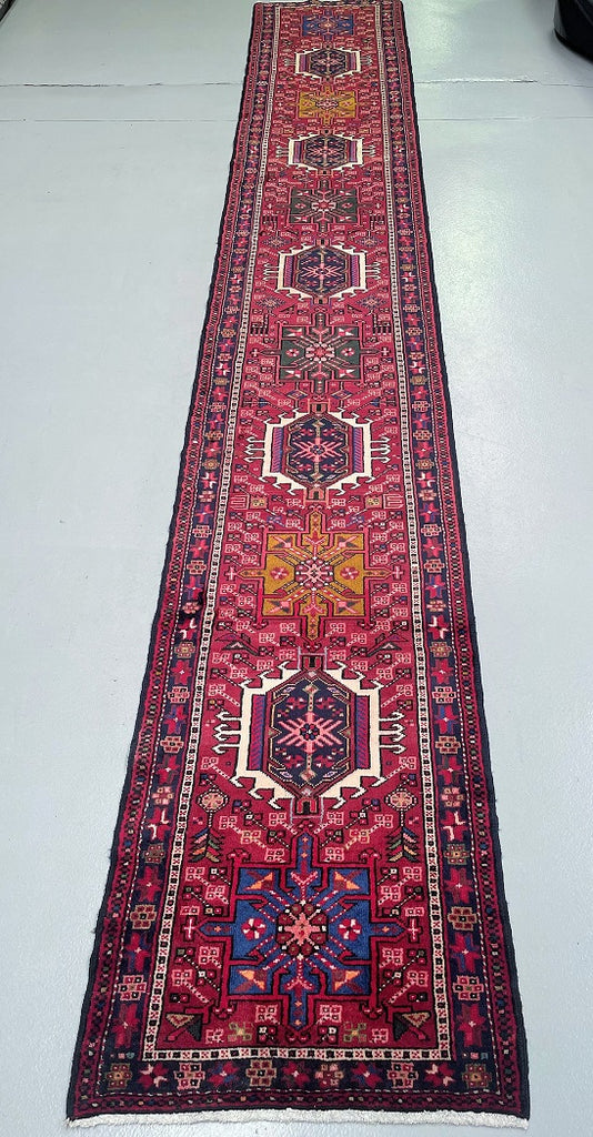 Rare Extra Authentic Handmade Persian Heriz Hall Runner. Above All It Is Hard To Find Runners Over 4m Long. It Has A Pure Hand Spun Wool Pile On Cotton Base. Red, Blue, Beige, Black, Brown, Mustard, Green And Pink Tone Dyed Using Traditional Methods.