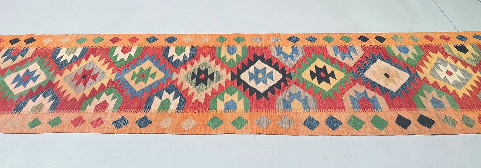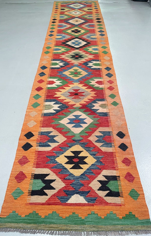 Handmade Afghan Kilim Hall Runner 395x86cm