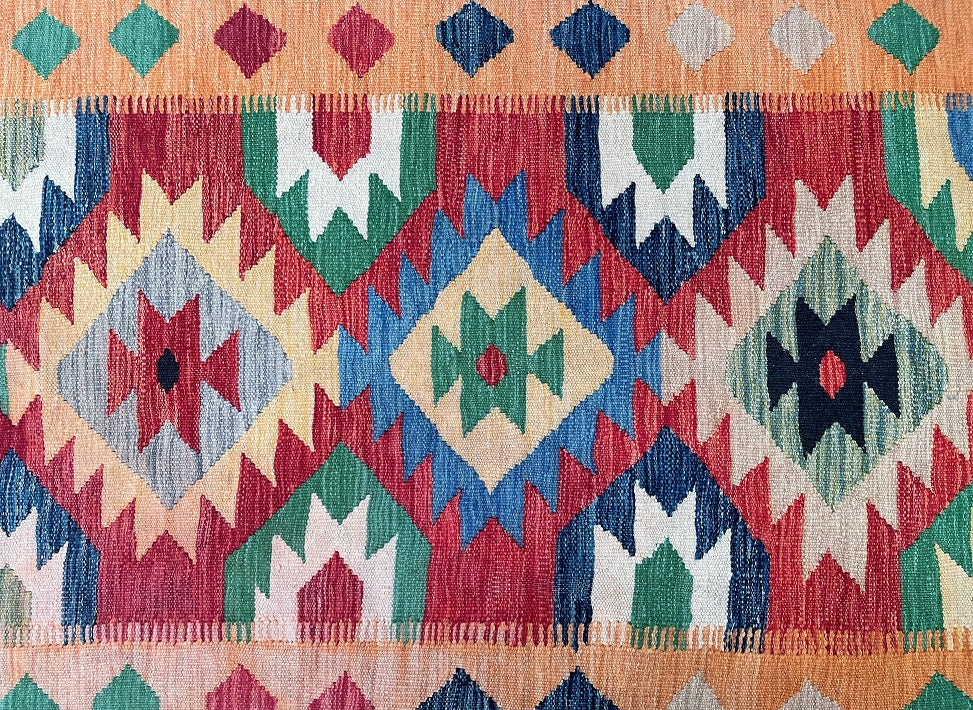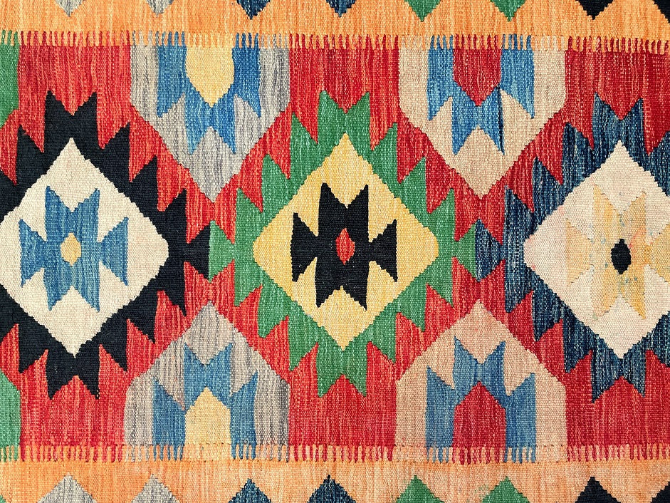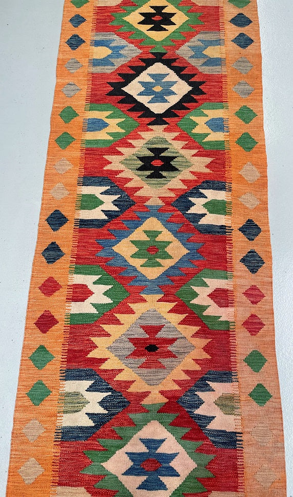 Decorative Genuine Hand Woven Afghan Kyber Kilim Hall Runner. Above All It Is Reversible. It Also Has A Pure Hand Spun Wool Pile On Wool Base. Vibrant Multi-Color Tone Dyed Using Vegetable Roots.