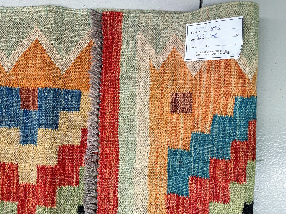 Certified Handmade Afghan Kilim Hall Runner 403x76cm