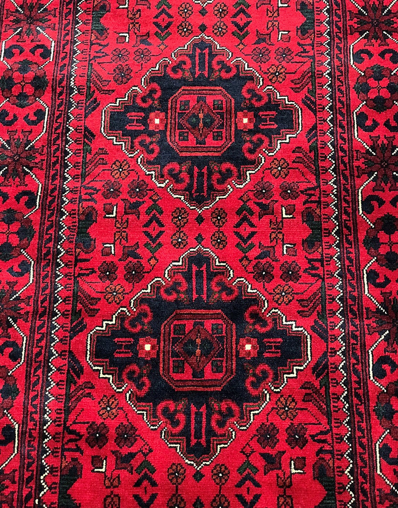 Superfine Lamb’s Wool Hand Knotted Tribal Afghan Khamyab Hall Runner. Above All It Has A Pure Hand Spun Lamb’s Wool Pile On Cotton Base. It Also Has A Deep Maroon/Burgundy Tone Dyed Using Traditional Methods. This Runner Would Look Fantastic On Wooden Floor Board.
