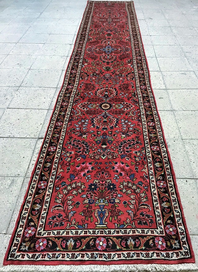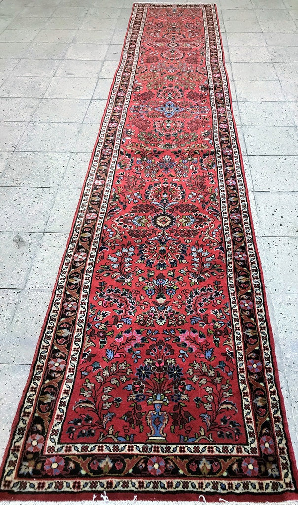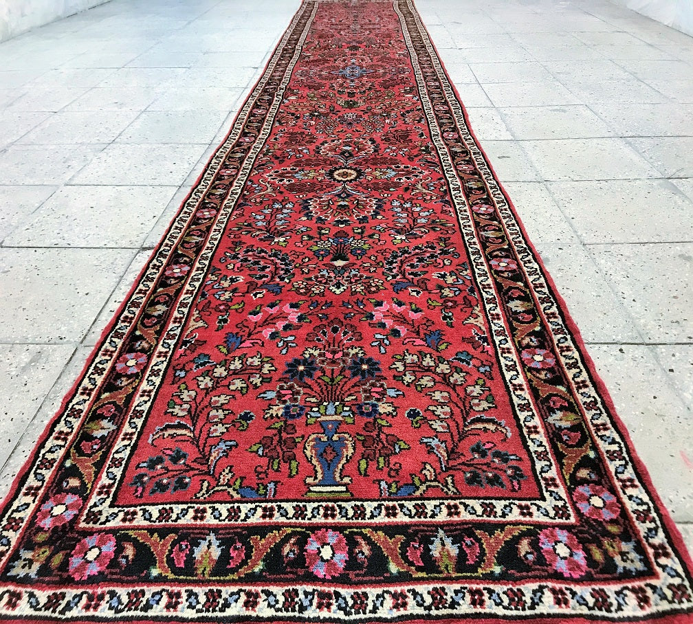 Authentic Hand Knotted Persian Lilian Hall Runner. Above All This Is a Very Collectable Item Made By Armenian Weaver Settled In Central West Persia. It Also Has Pure Wool Pile On Cotton Base. Soft Red, Indigo Blue, Beige, Light Blue and Green Tone Dyed Using Traditional Methods.