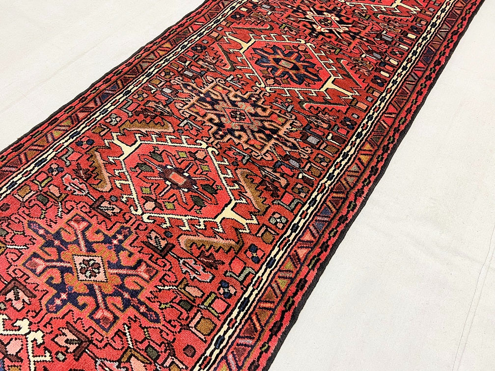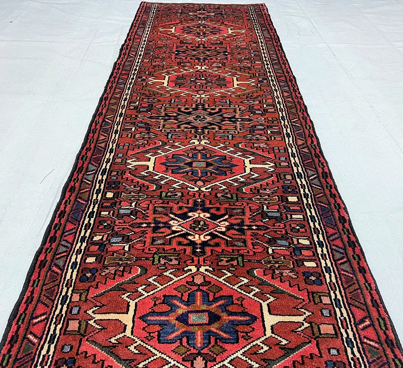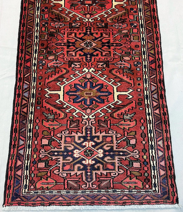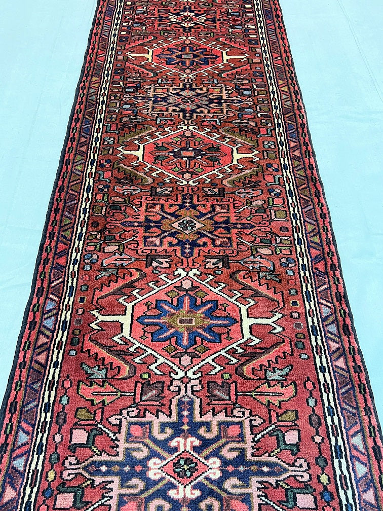 Amazing Authentic Handmade Persian Qarajeh Hall Runner. Above Has A Pure Hand Spun Wool Pile On Cotton Base. Rustic Terracotta/Red, Beige, Pink, Blue, Black, Green And Brown Tone Dyed Using Traditional Methods.