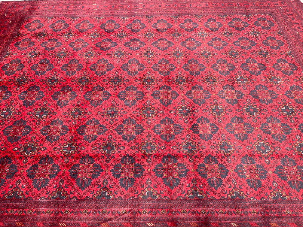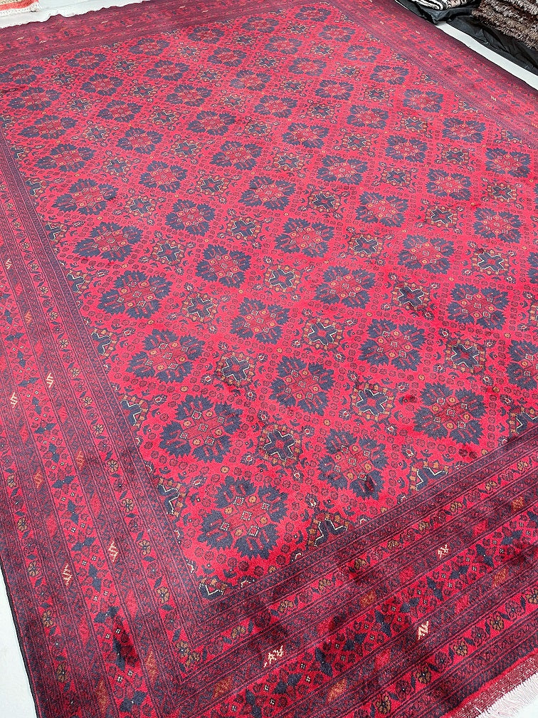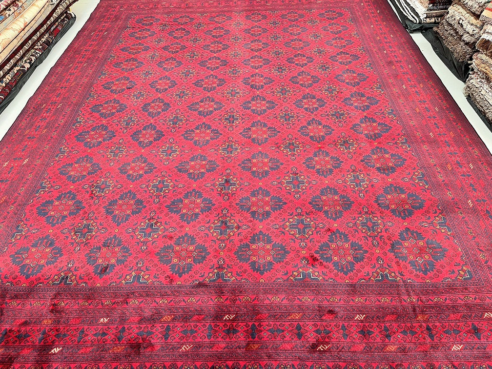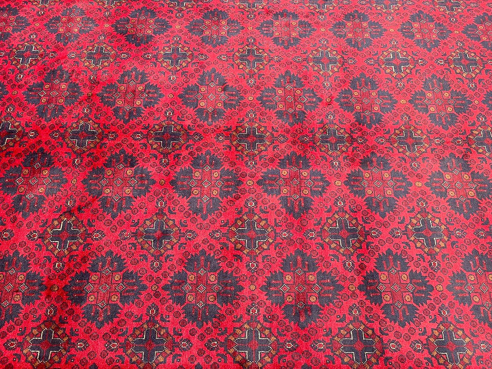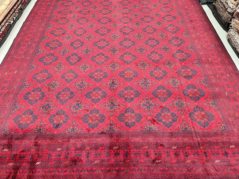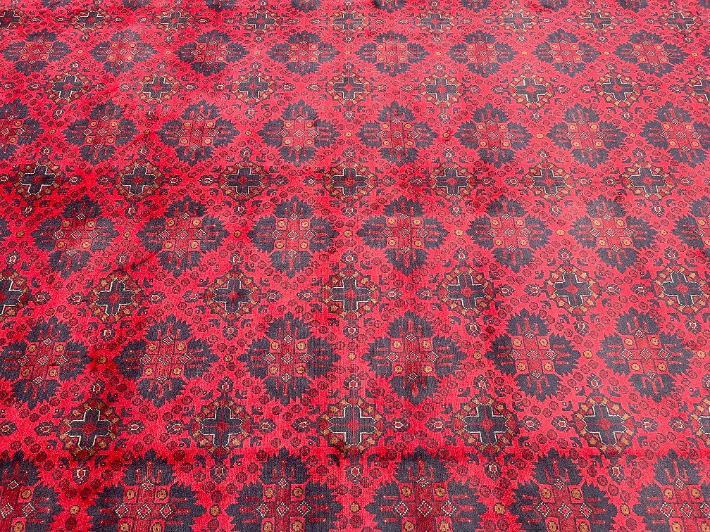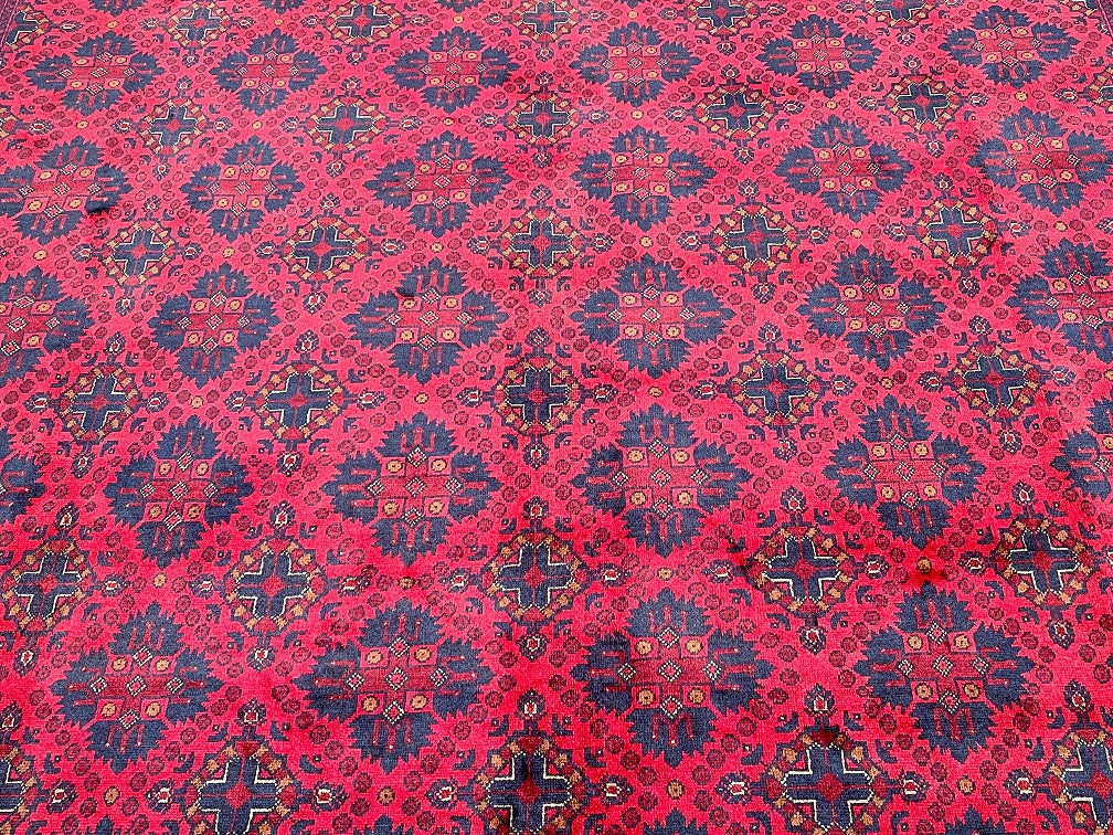 Massive Room Size Authentic Handmade Afghan Kunduz Rug. Above All It Has A Pure Hand Spun Wool Pile On Cotton Base. It Also Has A Rich Burgundy/Burnt Terracotta Tone Dyed Using Traditional Methods.
