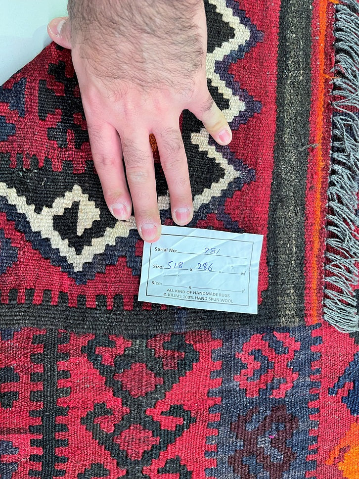 Certified Hand Woven Afghan Kilim Rug 518x286cm
