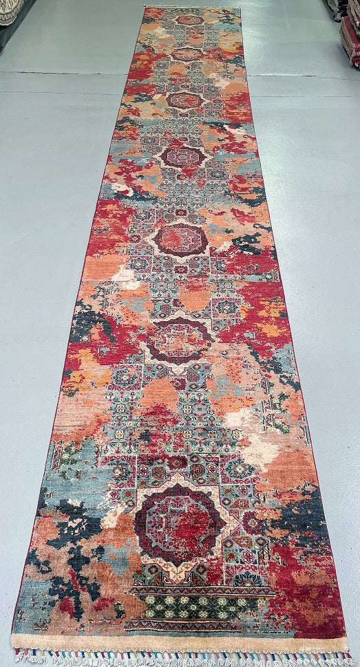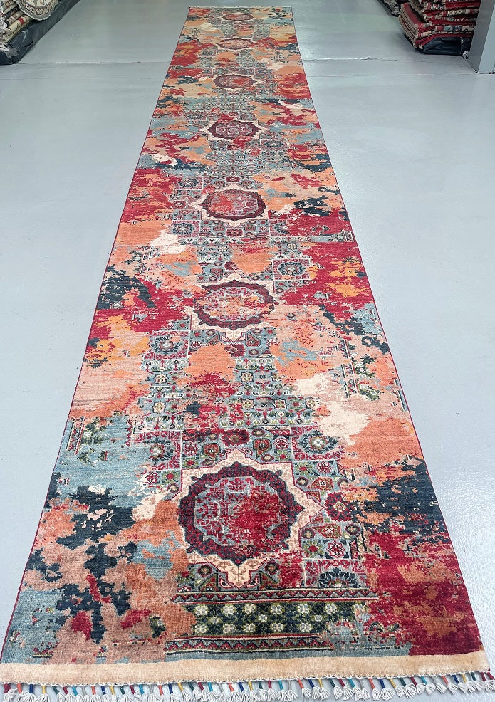 Extra Long Authentic Handmade Afghan Mamluk Hall Runner. Above All It Has A Pure Hand Spun Wool Pile On Cotton Base. Multi Colour Tones Dyed Using Traditional Methods (Vegetable Dyes). Last Of True Woven Tribal Art.
