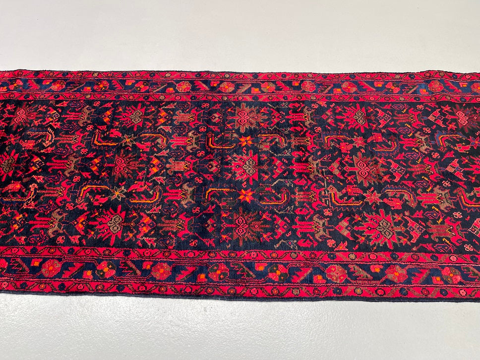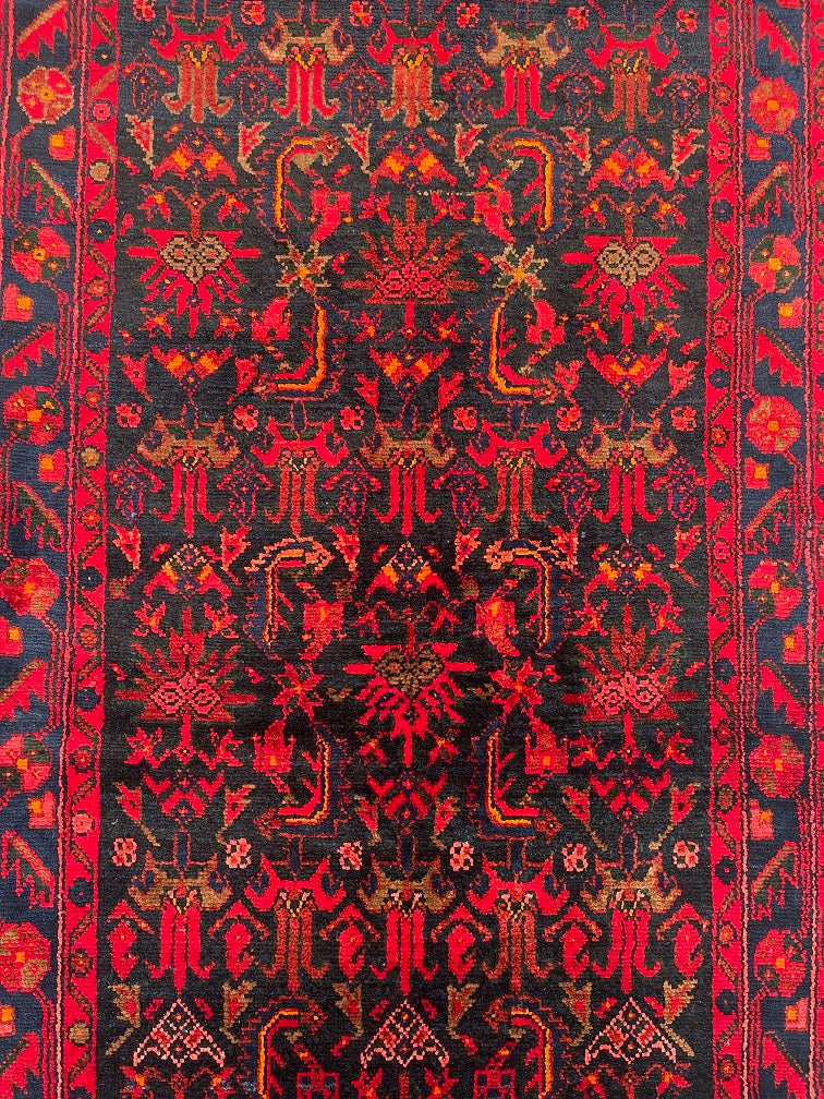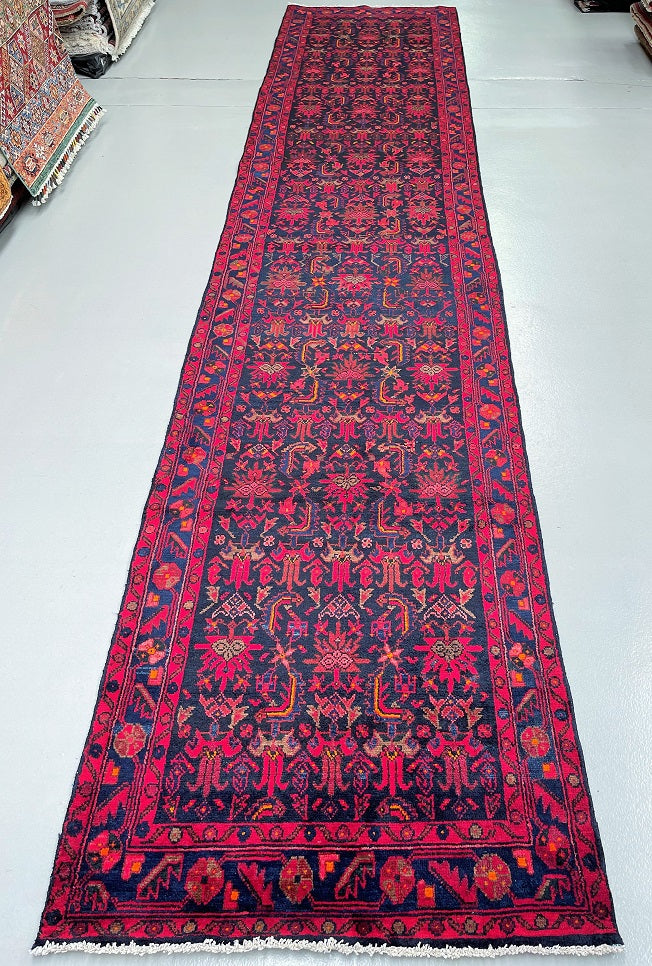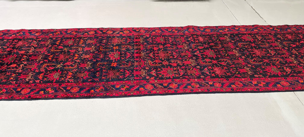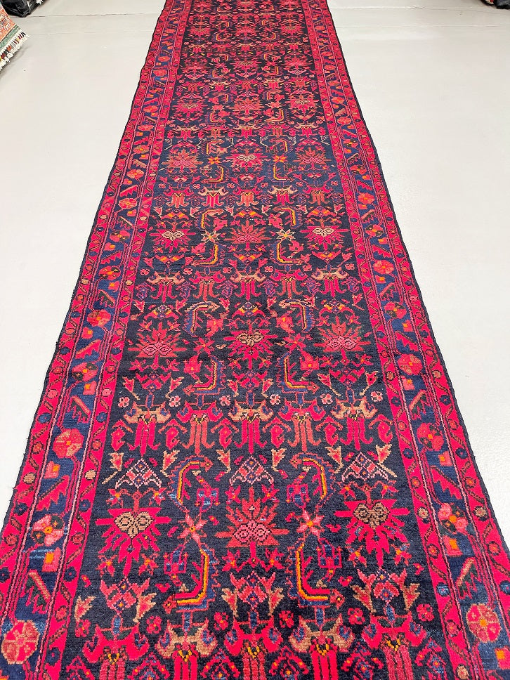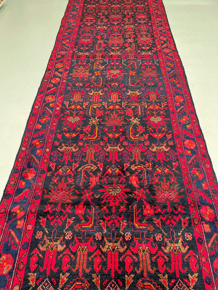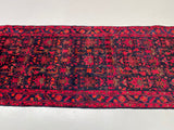 Oversize Authentic Hand Knotted Tribal Persian Malayer Hall Runner. Above All It Is Hard Wearing And Durable Piece. It Also Has Pure Hand Spun Wool Pile On Cotton Base. Deep Indigo Blue Background Dyed Using Traditional Methods.