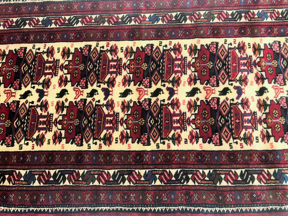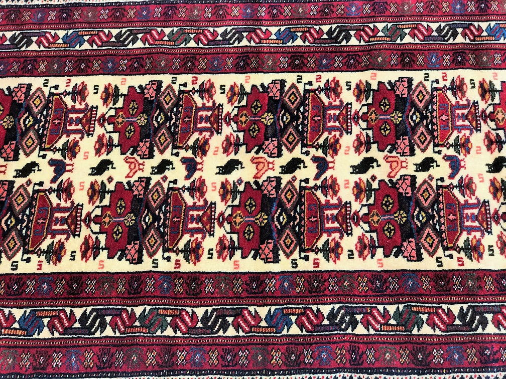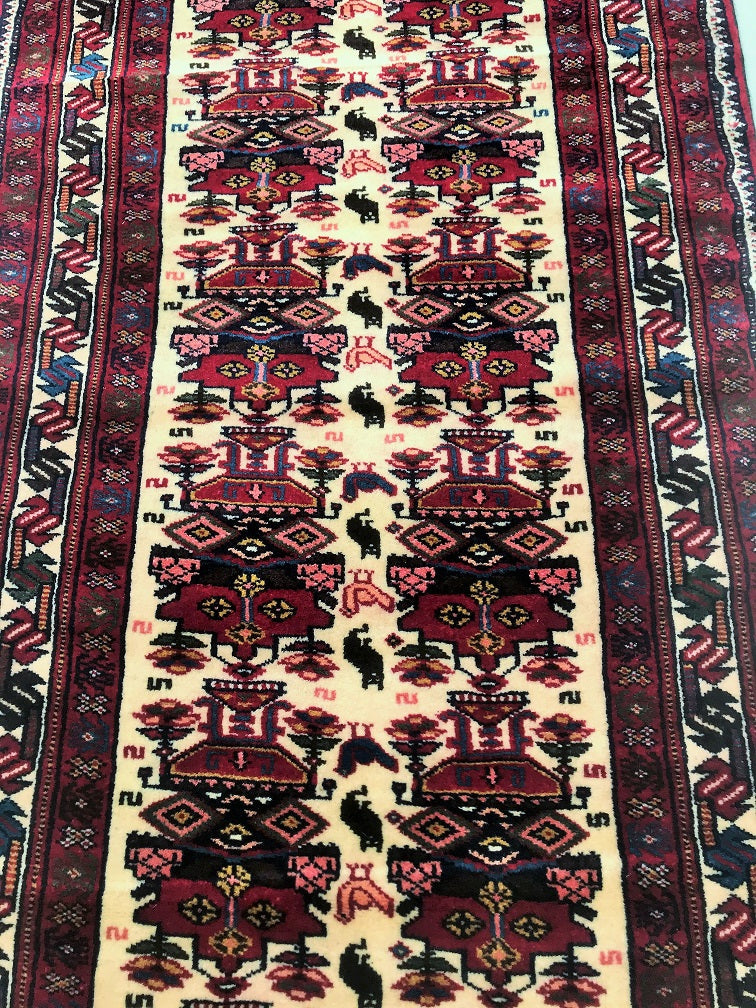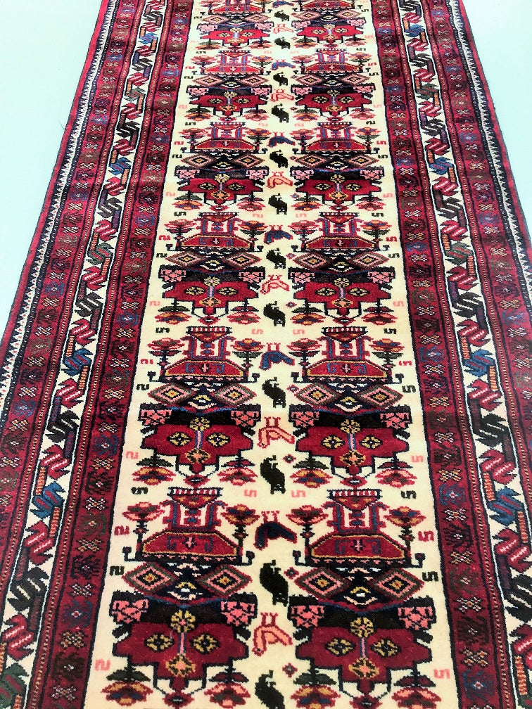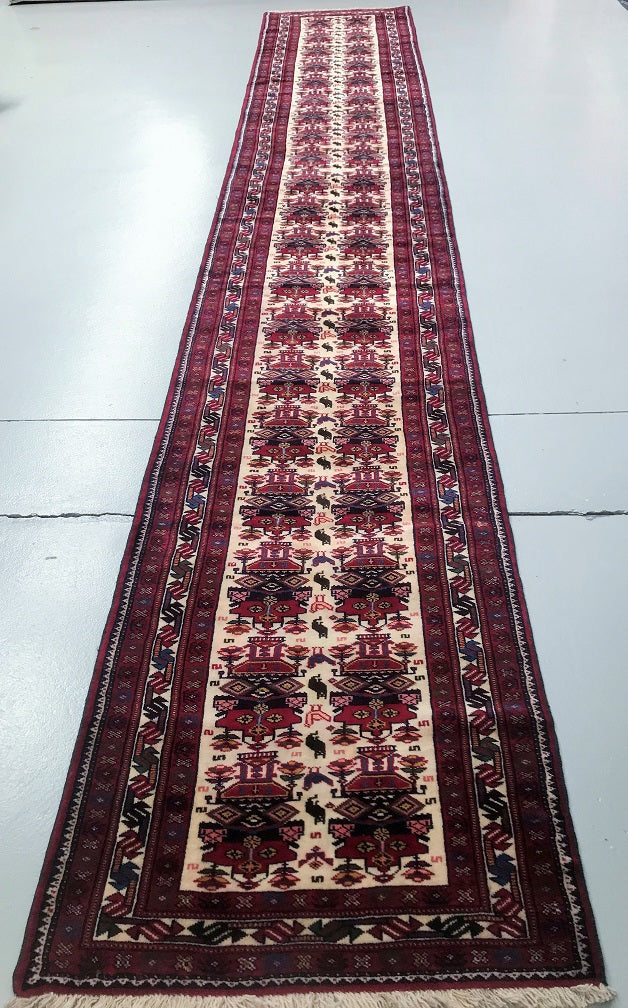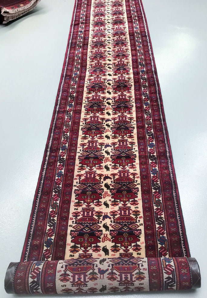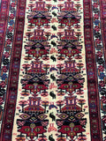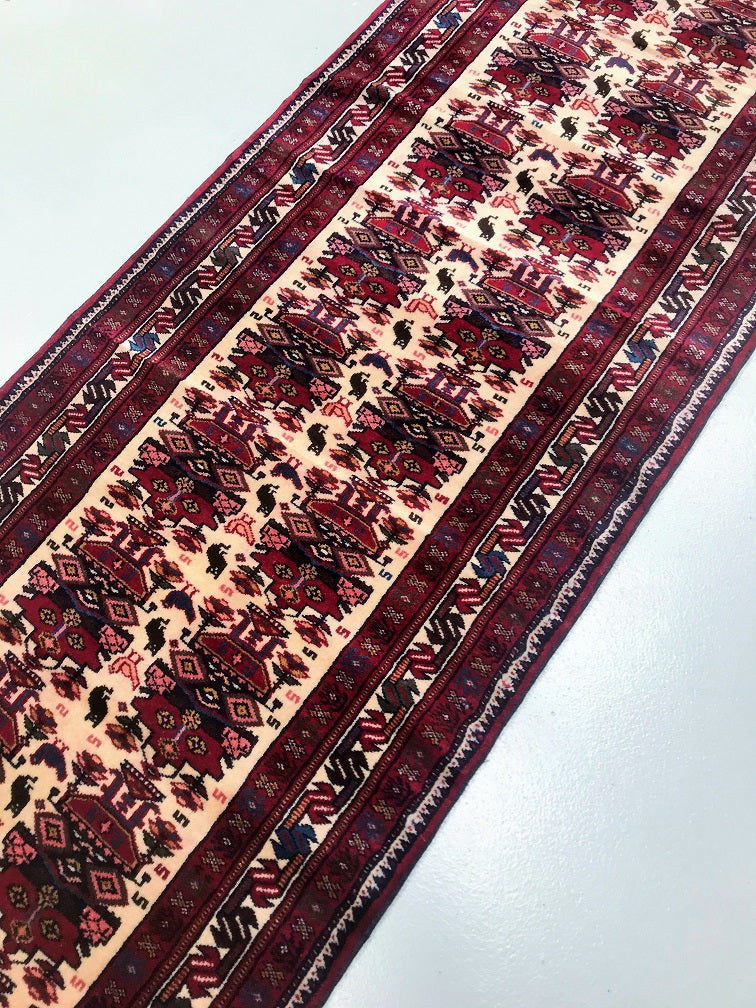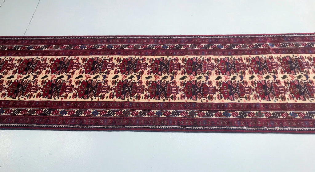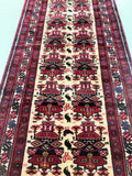 Superb Tribal Hand Knotted Persian Quchan Hall Runner. Above All It Has Pure Hand Spun Wool Pile On Wool Base. Beige, Burgundy and Indigo Blue Tone Dyed Using Traditional Methods.