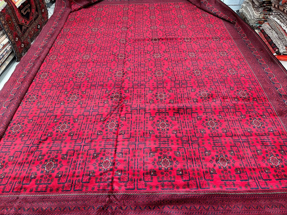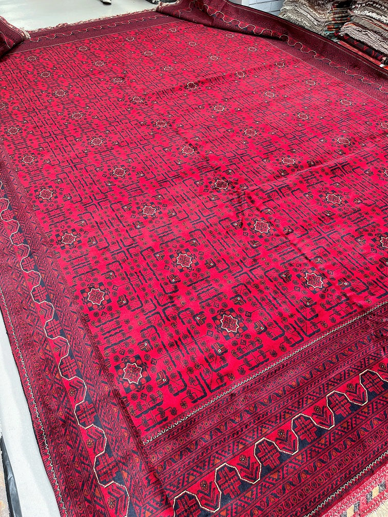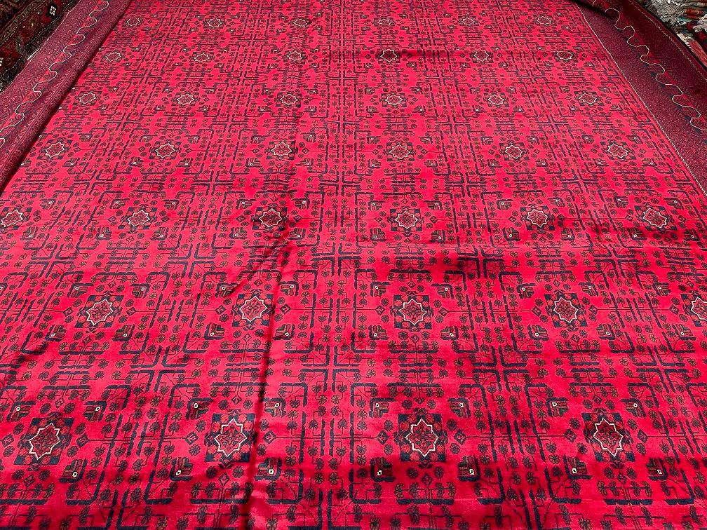 Superb Oversize Room Size Authentic Handmade Afghan Kunduz Rug. Above All It Has A Merino Wool Pile On Wool Base. It Also Has A Rich Burgundy/Red Tone Dyed Using Traditional Methods.