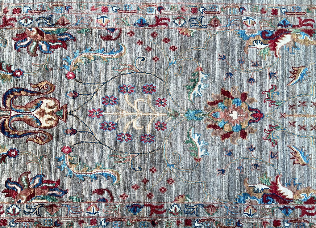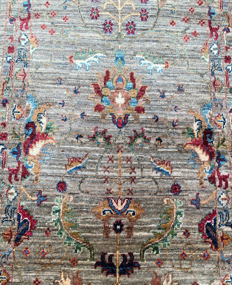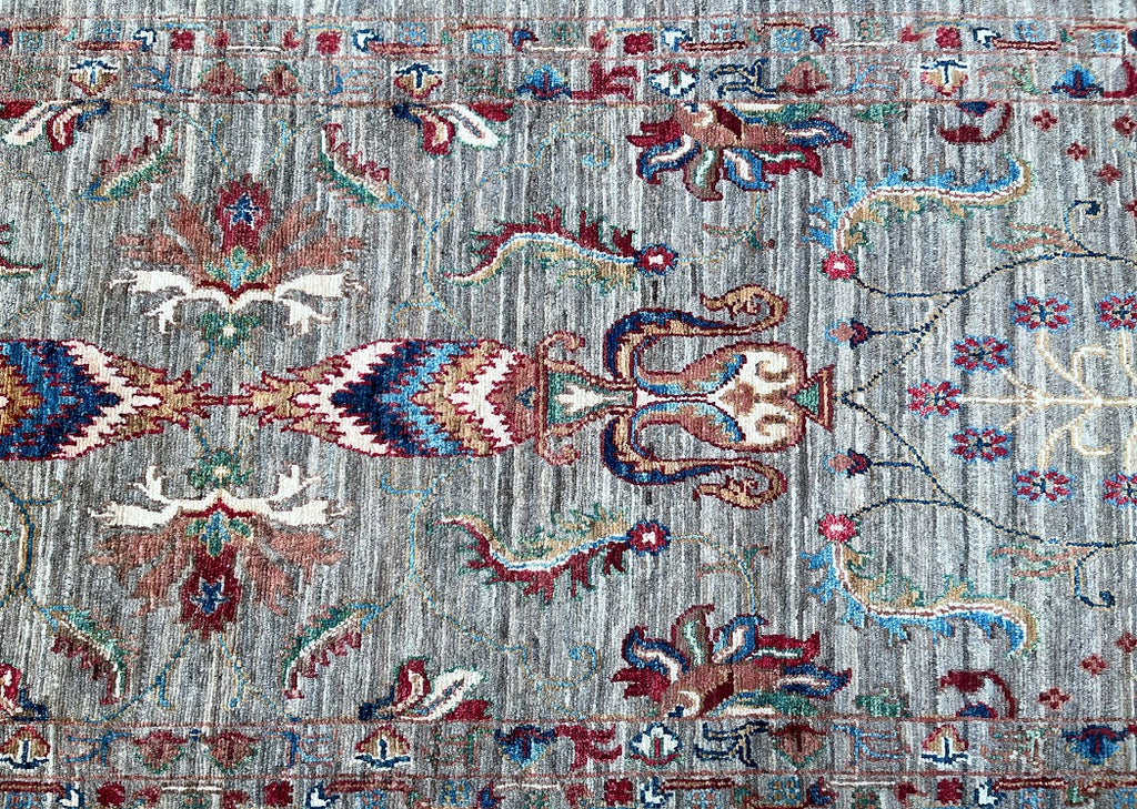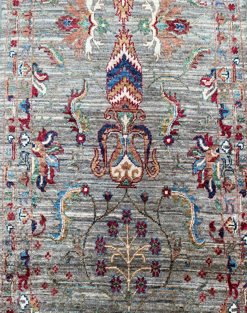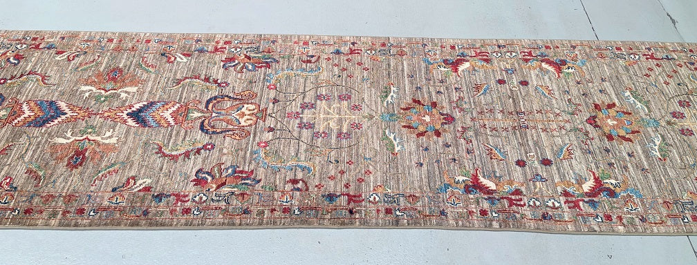 Oversize Authentic Handmade Afghan Chobi Hall Runner. Above All It Has A Pure Hand Spun Wool Pile On Cotton Base. Stone Grey, Light Brown And Beige Tones With Ivory, Turquoise Blue, Deep Navy, Terracotta Red And Soft Gold Accents Dyed Using Traditional Methods (Vegetable Dyes). Last Of True Woven Nomadic Art.