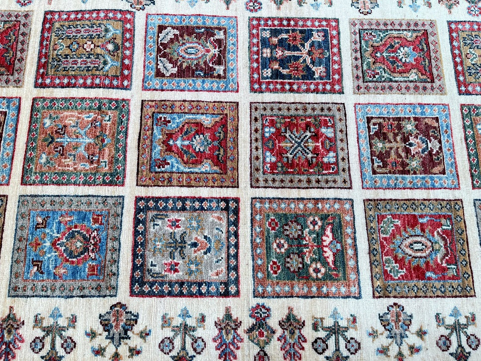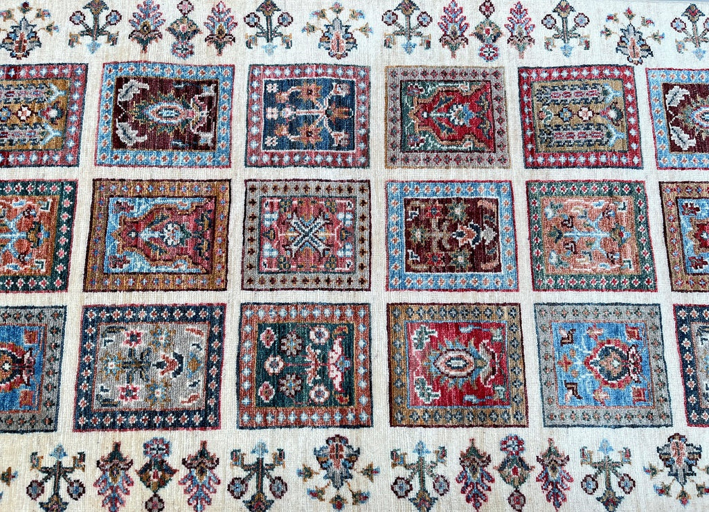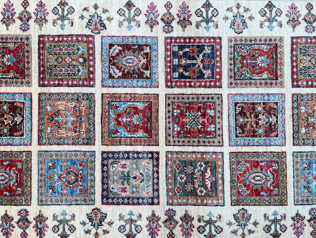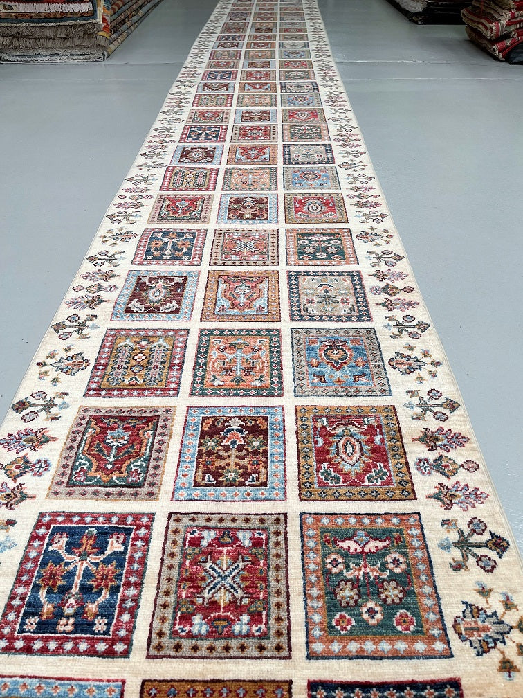 Extra Long Authentic Handmade Afghan Super Kazak Hall Runner. Above All We Do Have This Runner In A Matching Pair. It Also Has A Pure Hand Spun Wool Pile On Cotton Base. Beige Background Dyed Using Traditional Methods (Vegetable Dyes). Last Of True Woven Tribal Art.
