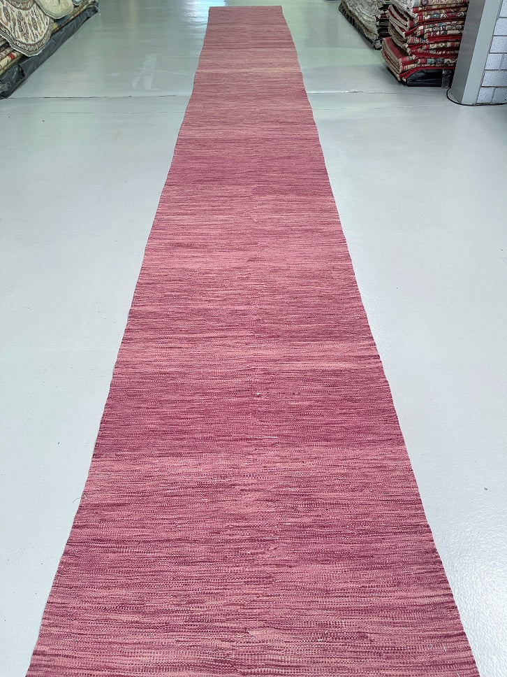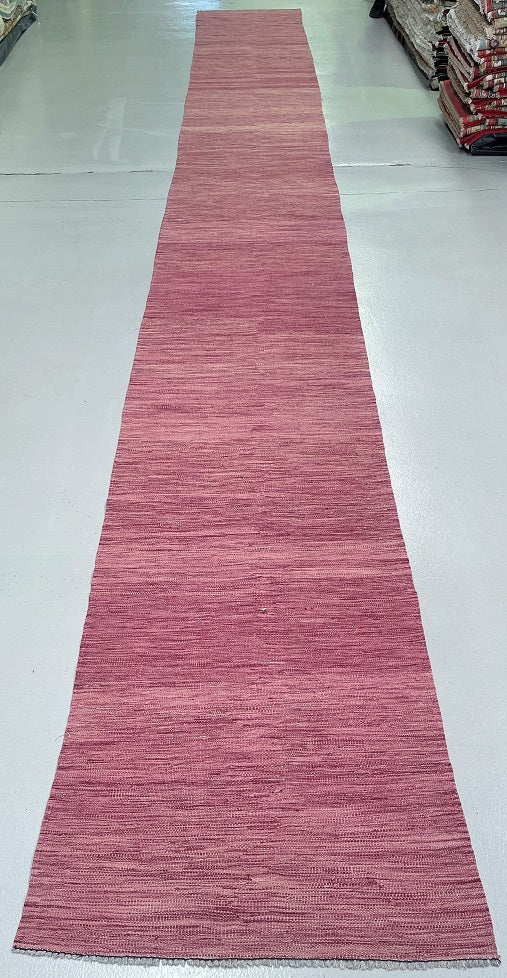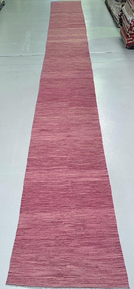 Oversize Contemporary Hand Woven Afghan Waziri Kilim Hall Runner. It Has A Wool Pile On Wool Base. Pink Tones Dyed Using Traditional Methods.