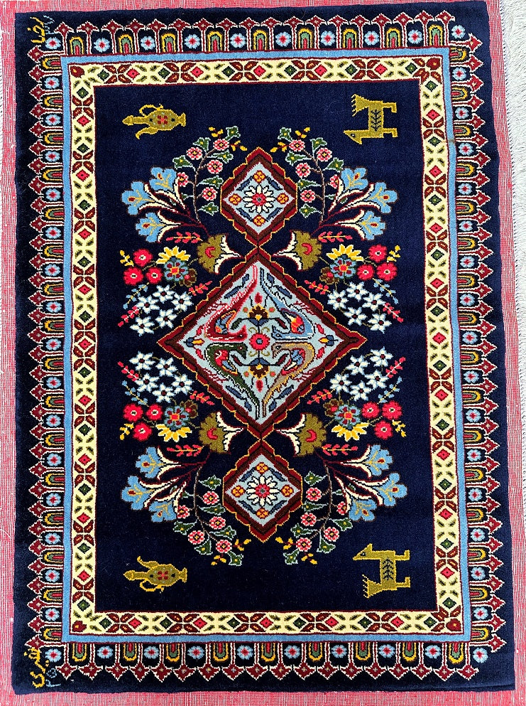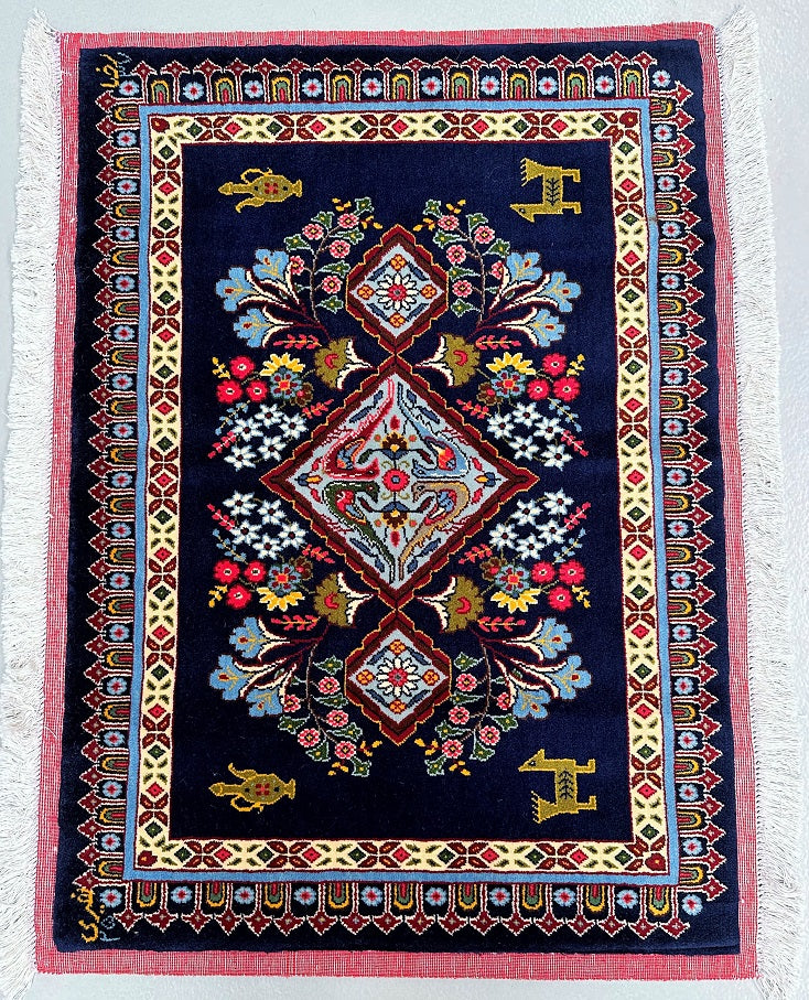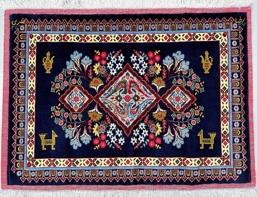 Certified Hand Knotted Persian Rug Signed 90x65cm