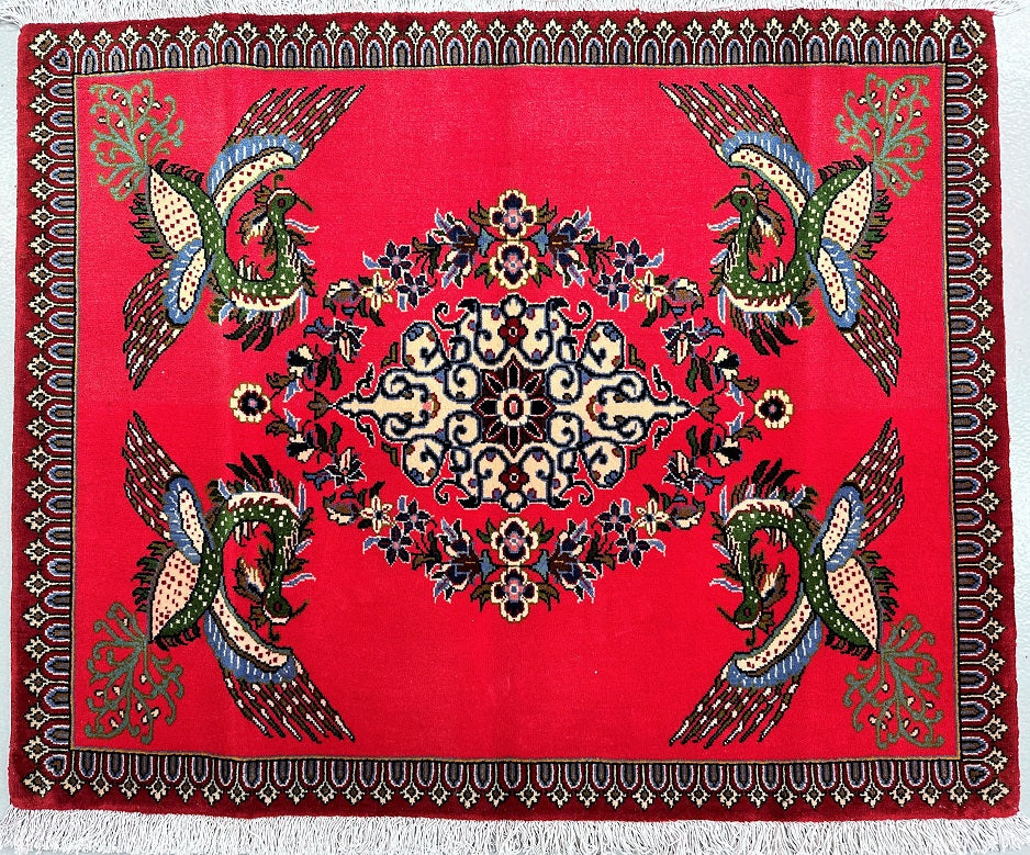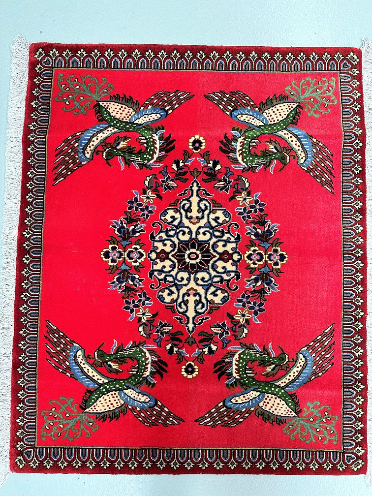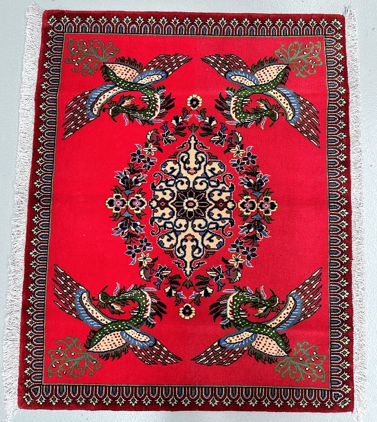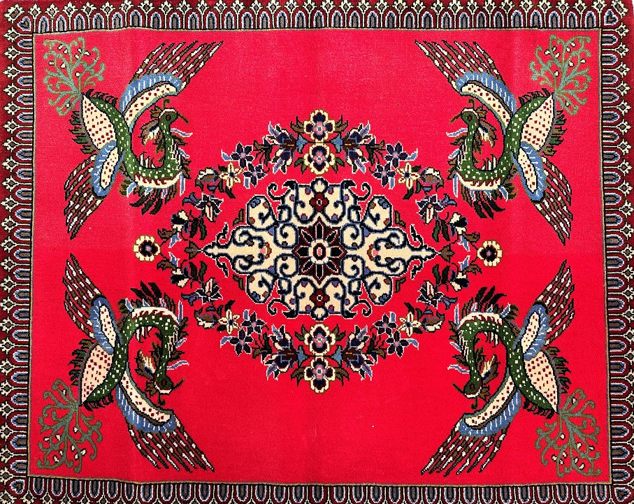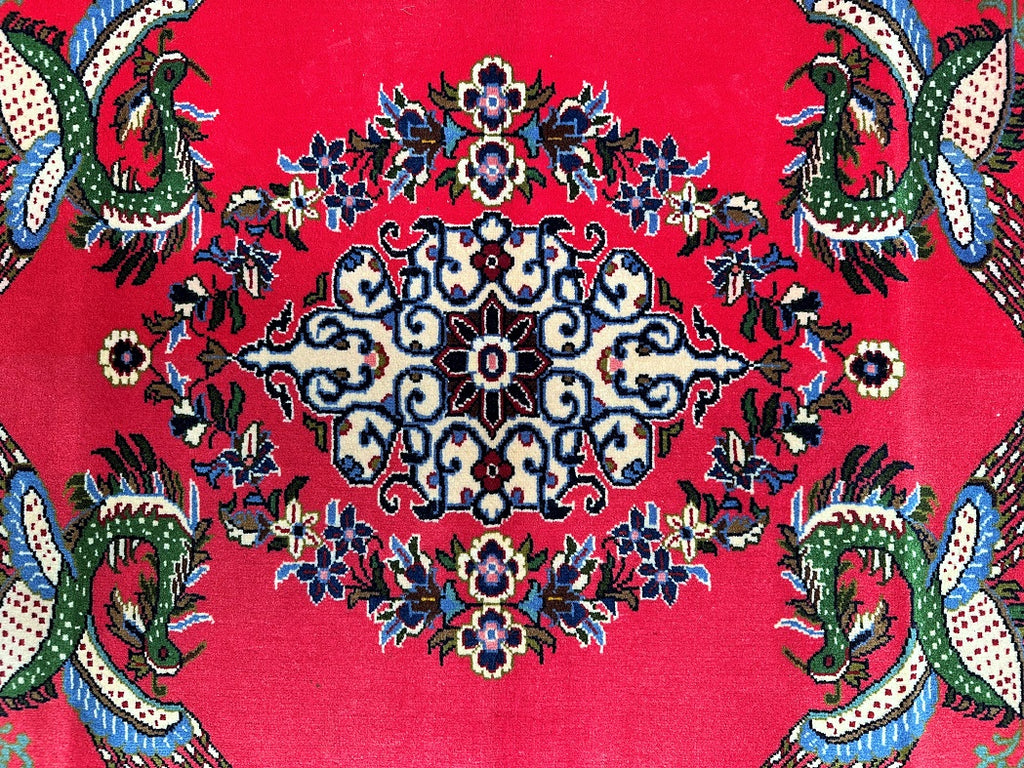 Superb Authentic Handmade Persian Kashan Rug. It Has a Pure Lamb’s Wool Pile on Cotton Base. Pinkish Red, Blue, Black, Beige, Pink And Green Tone Dyed Using Traditional Methods.