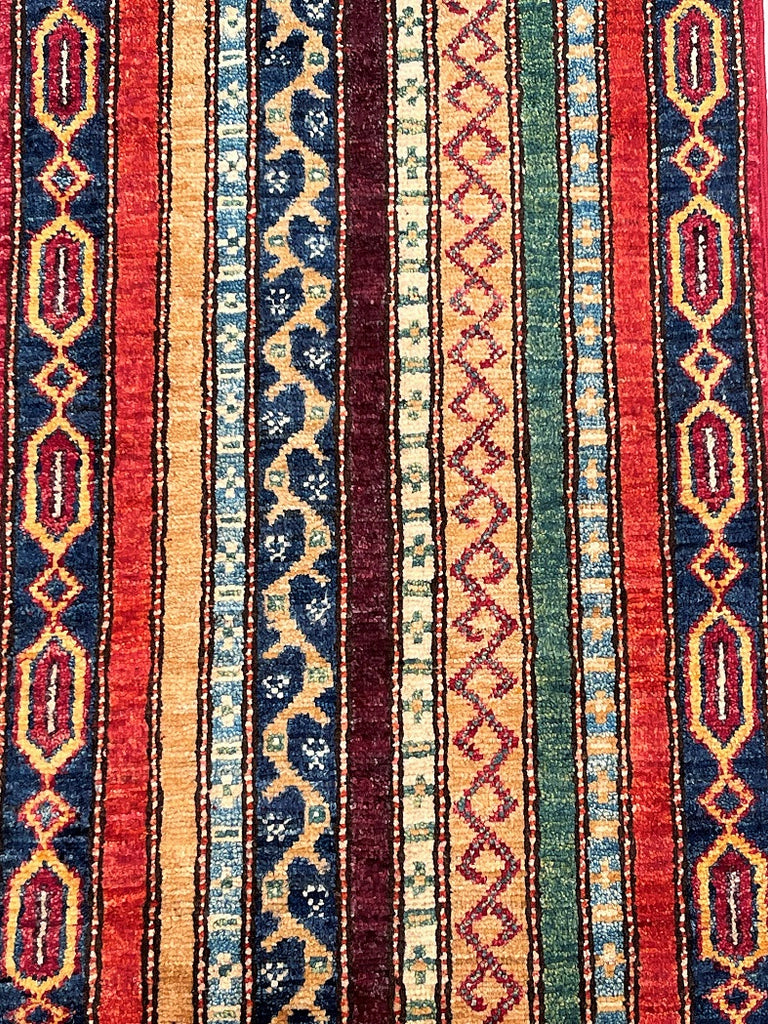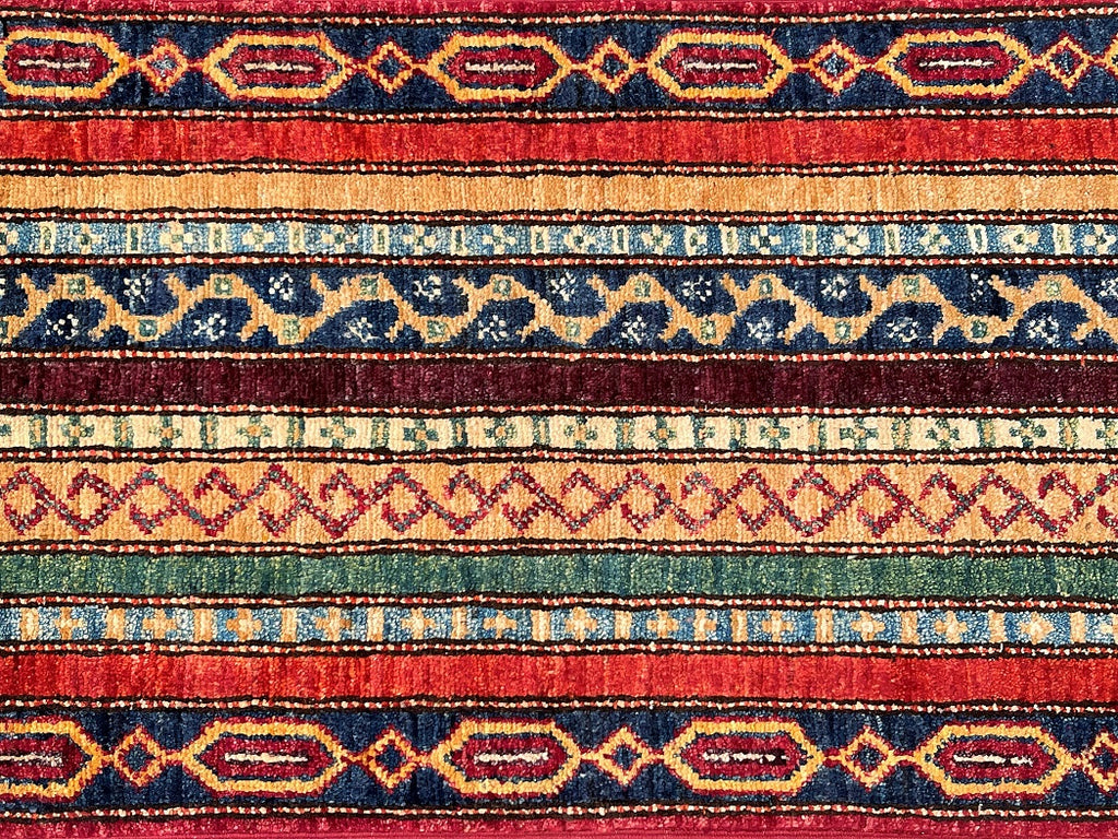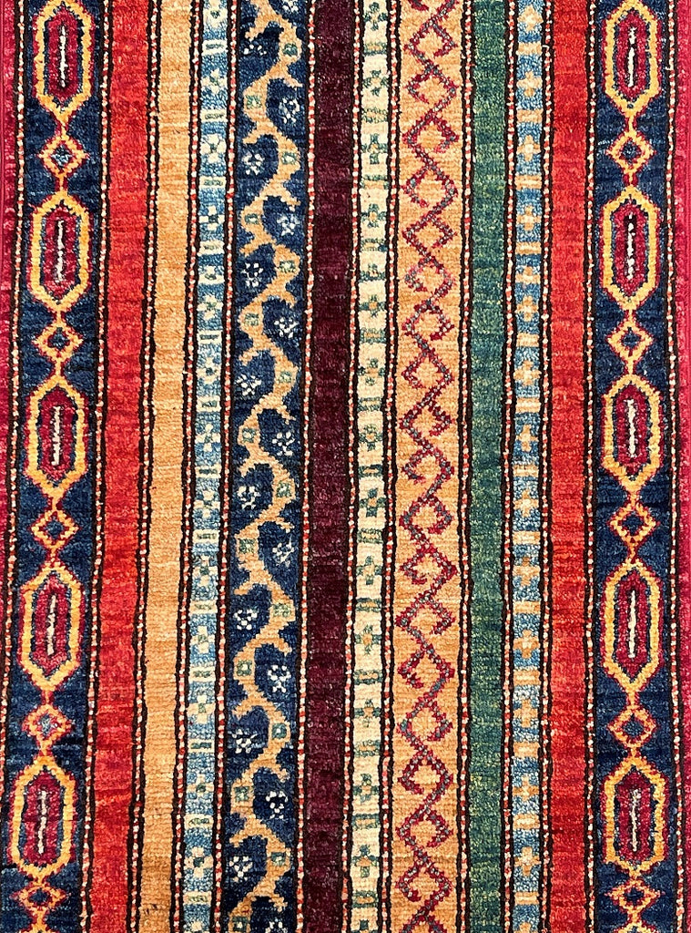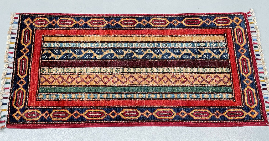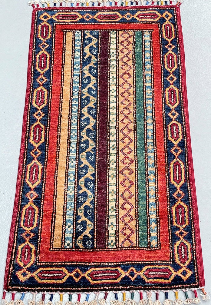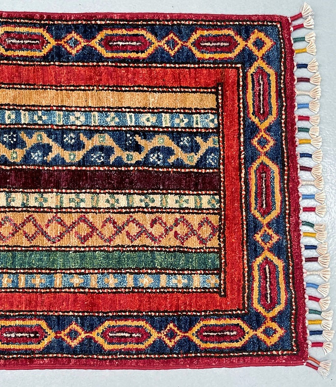 Door Mat Size Hand Knotted Super Kazak Rug. Above All It Is Pure Hand Spun Wool Pile On Cotton Base. Multi-Color Tone Dyed Using Traditional Methods (Vegetable Dyes). Last of True Woven Nomadic Art.