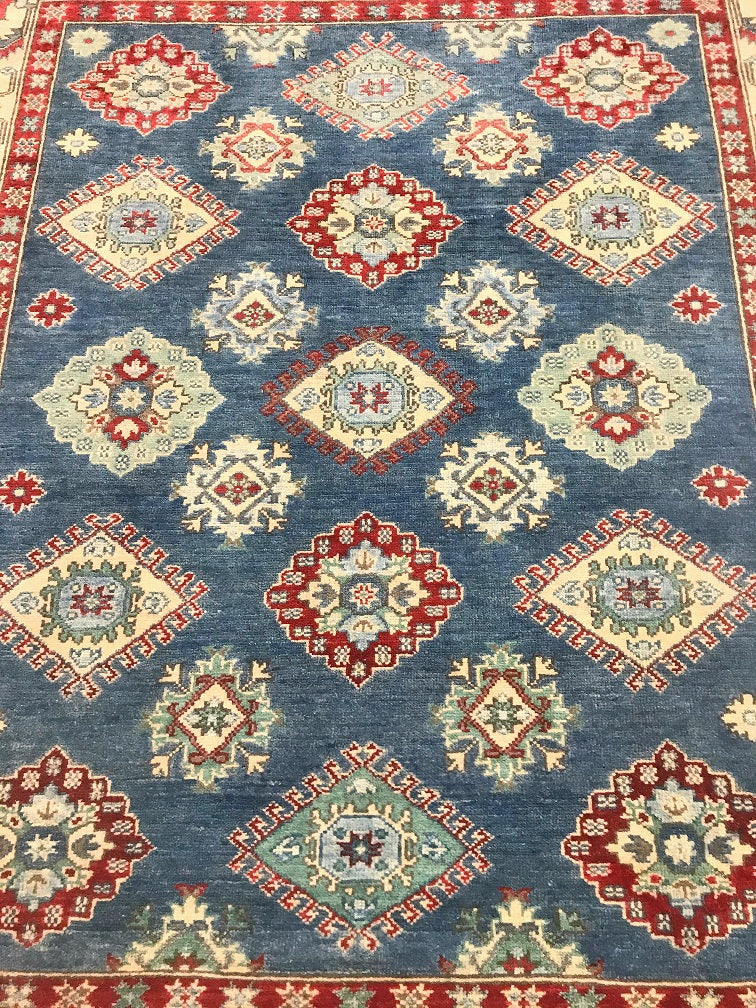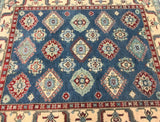 Unique Coffee Table Size Afghan Kazak Rug. Above All It Is Pure Hand Spun Wool Pile On Cotton Base. Aesthetic Blue Tone Dyed Using Traditional Methods (Vegetable Dyes). Last of True Woven Tribal Art.