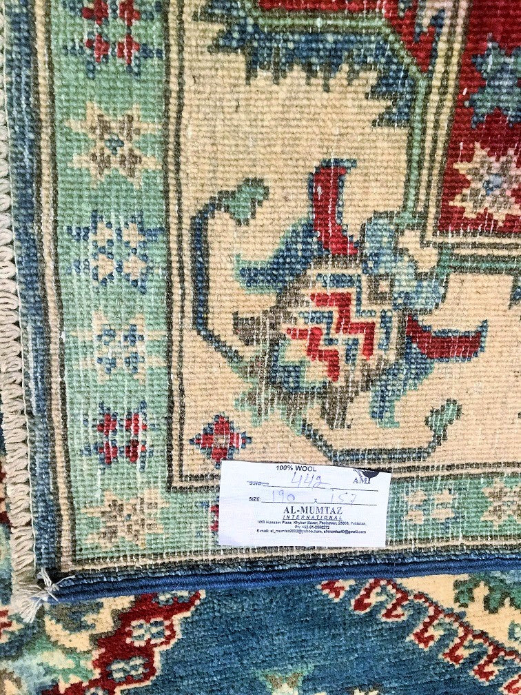 Certified Handmade Afghan Kazak Rug 190x157cm