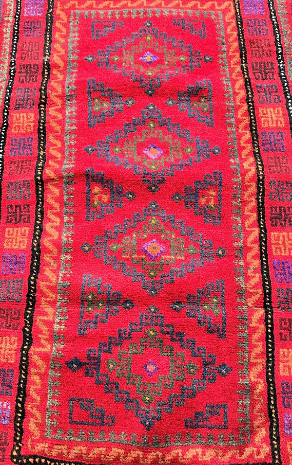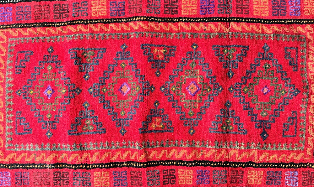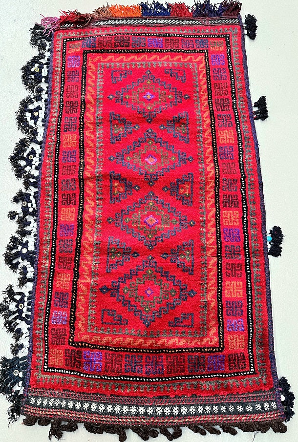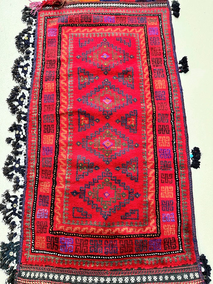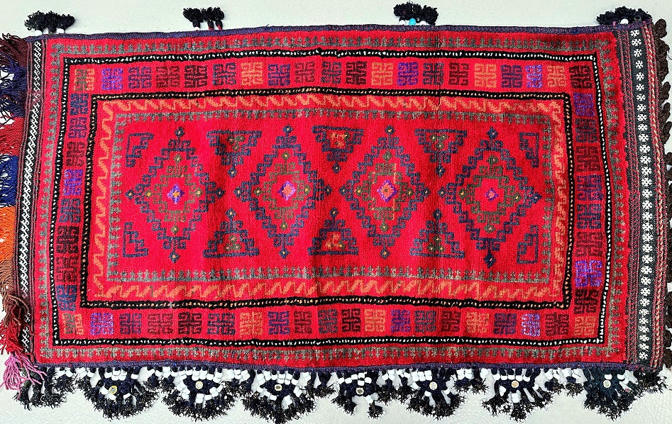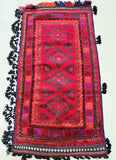Authentic Handmade Afghan Mishwani Balouchi Saddle Rug/Pillow Case. Above All It Has The Kilim Backing And Could Be Filled And Used As A Large Cushion, Pillow Or As A Floor Rug. It Also Has A Pure Hand Spun Wool Pile On Wool Base. Red Tones Dyed Using Traditional Methods.