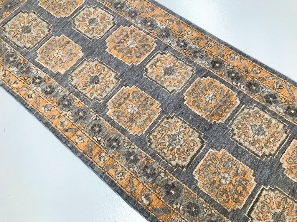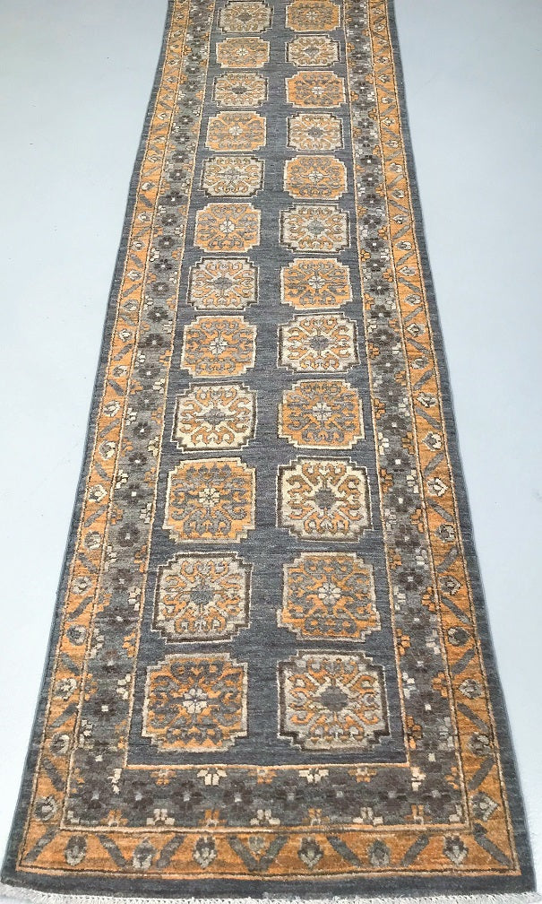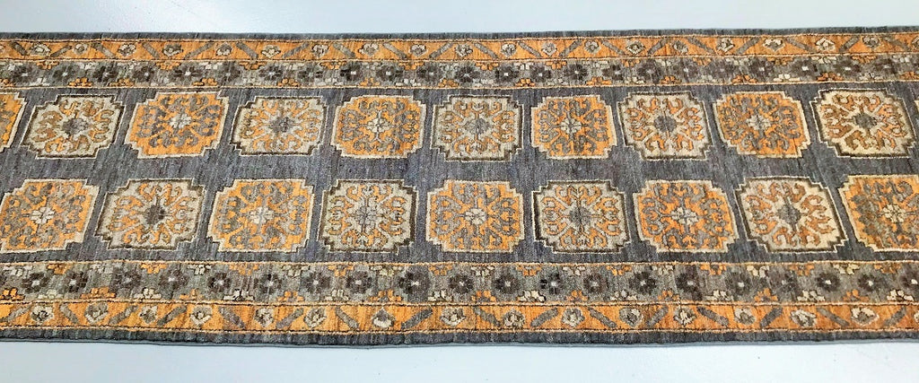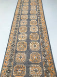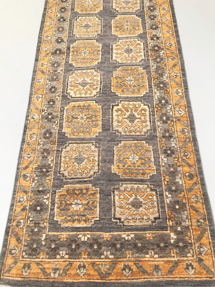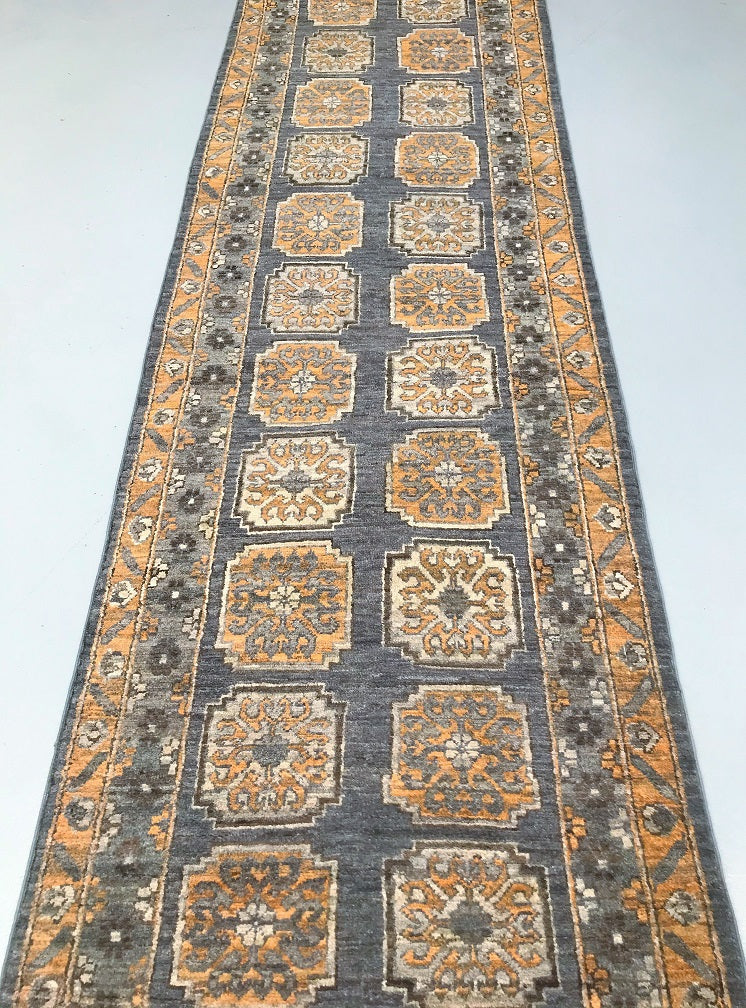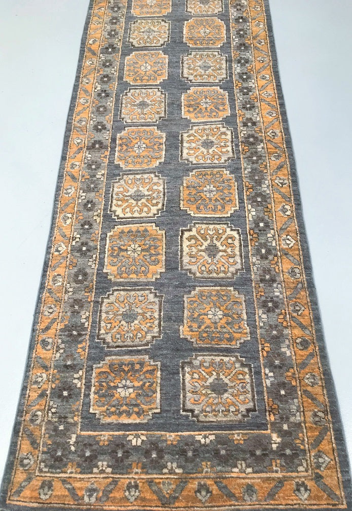 Genuine Handmade Afghan Chobi Hall Runner. Above All It Is Pure Hand Spun Wool Pile On Cotton Base. Beige, Grey And Gold Tones Dyed Using Traditional Methods (Vegetable Dyes). Last Of True Woven Nomadic Art.