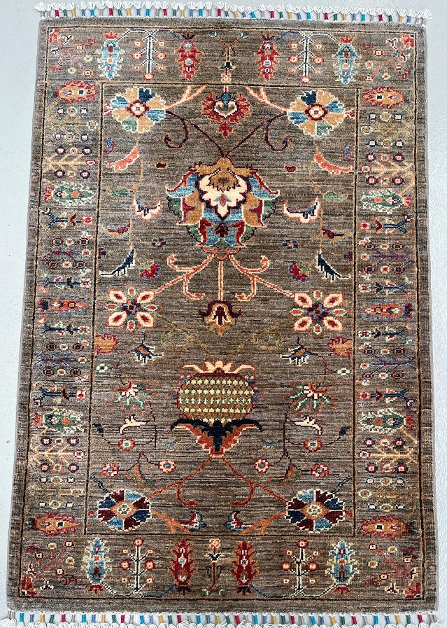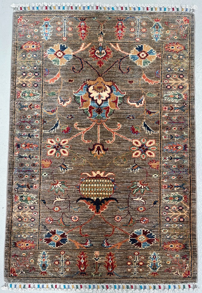 Authentic Hand Knotted Afghan Chobi Rug. Above All It Has A Pure Hand Spun Wool Pile On Cotton Base. Light Brown, Beige, Green, Blue, Red And Orange Tone Dyed Using Traditional Methods (Vegetable Dyes). Last of True Woven Nomadic Art.