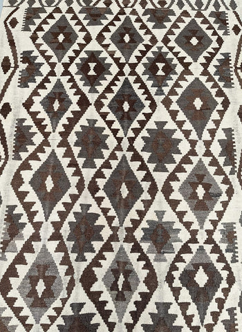 Fine Coffee Table Size Hand Knotted Afghan Roshnai Rug. Above All It Is Merino Wool Pile On Wool Base. The Main Colors are Light Brown, Grey and Black Dyed Using Traditional Methods.