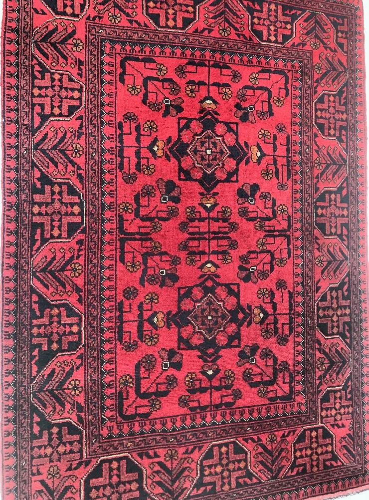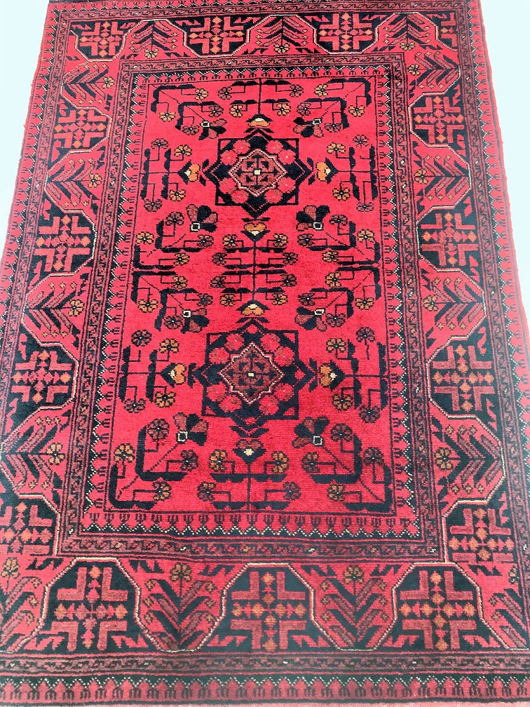 Certified Hand Knotted Tribal Afghan Rug 149x102cm