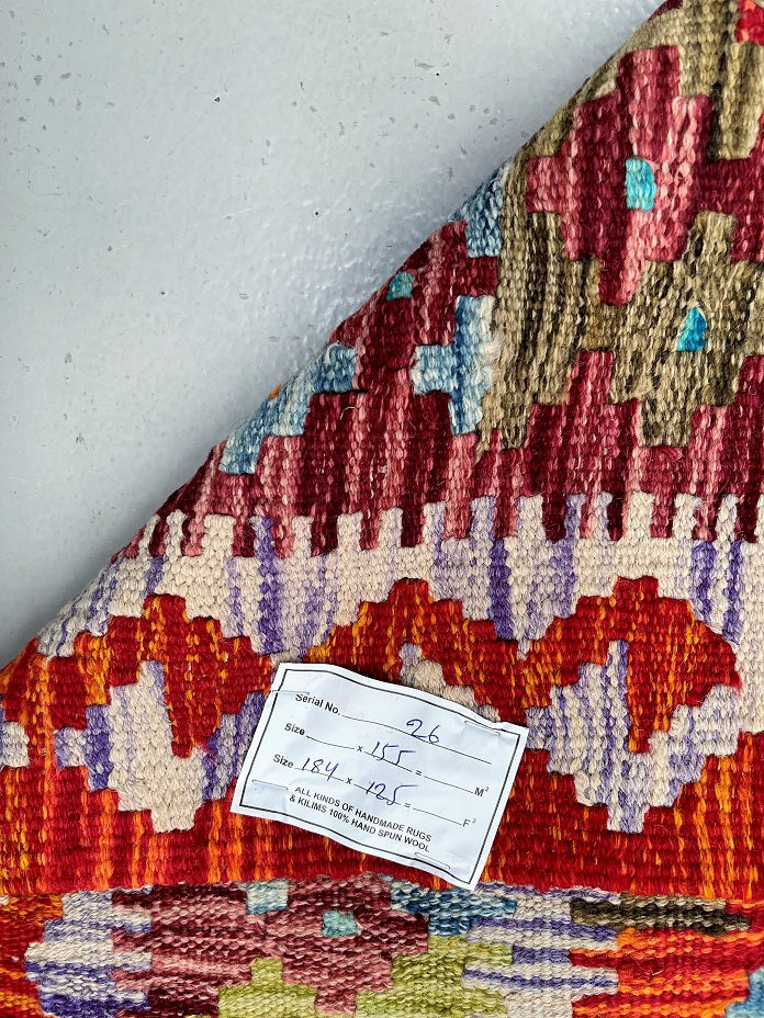 Certified Handmade Tribal Afghan Kilim Rug 184x125cm