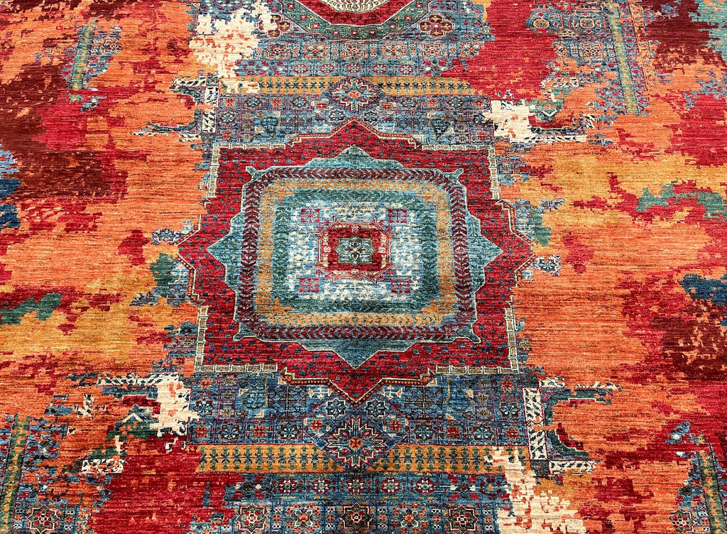 Massive Room Size Authentic Hand Knotted Afghan Mamluk Super Kazak Rug. Above All It Has A Lamb's Wool Pile On Cotton Base. Main Colors Are Beige, Red, Blue, Green And Orange Tone Dyed Using Traditional Methods (Vegetable Dyes). Last of True Woven Nomadic Art.