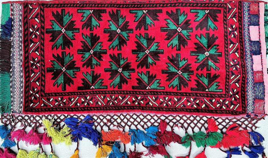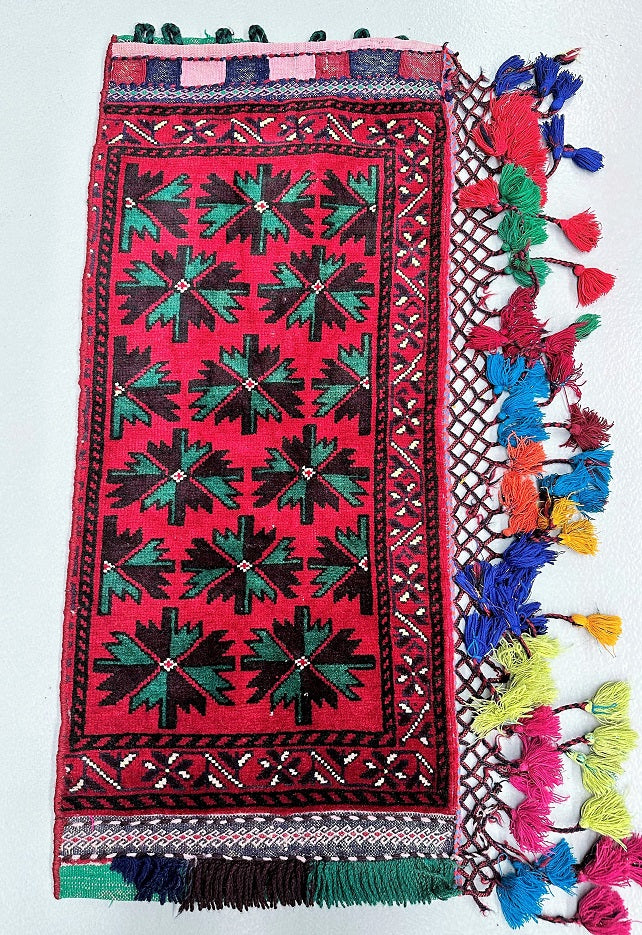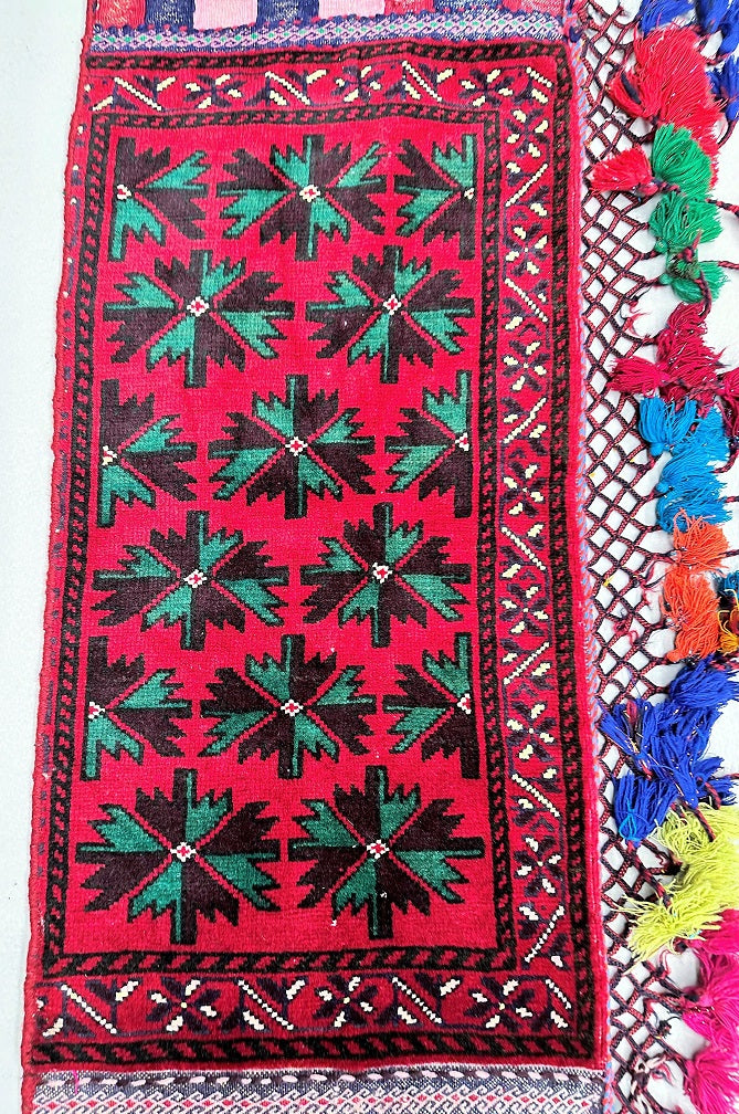 Certified Hand Knotted Afghan Saddle Bag Rug 100x43cm