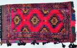Authentic Handmade Vintage Afghan Mishwani Balouchi Saddle Rug/Pillow Case. Above All It Has The Kilim Backing And Could Be Filled And Used As A Large Cushion, Pillow Or As A Floor Rug. It Also Has A Pure Hand Spun Wool Pile On Wool Base. Red, Indigo Blue, Black, Beige, Chocolate Brown, And Orange Tones Dyed Using Traditional Methods.