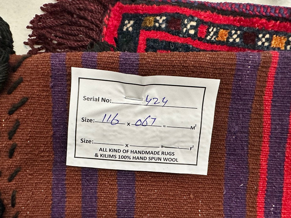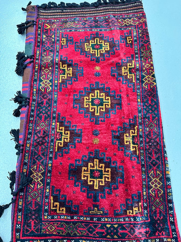 Certified Hand Knotted Afghan Saddle Bag Rug 116x67cm