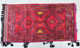 Authentic Handmade Vintage Afghan Mishwani Balouchi Saddle Rug/Pillow Case. Above All It Has The Kilim Backing And Could Be Filled And Used As A Large Cushion, Pillow Or As A Floor Rug. It Also Has A Pure Hand Spun Wool Pile On Wool Base. Red, Black, Beige, Chocolate Brown, And Orange Tones Dyed Using Traditional Methods.