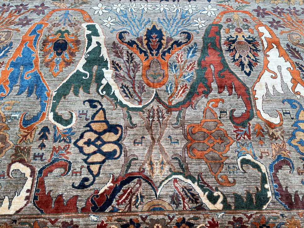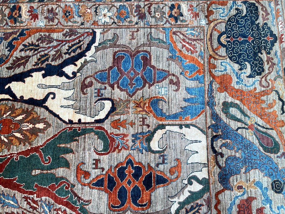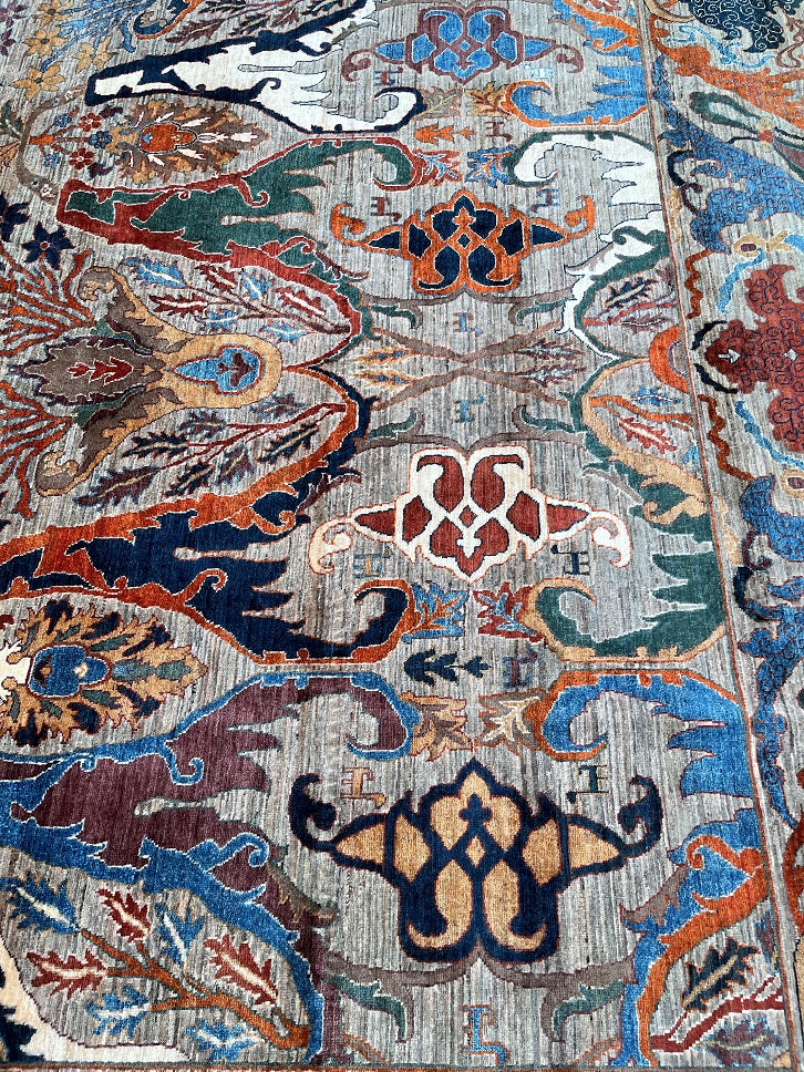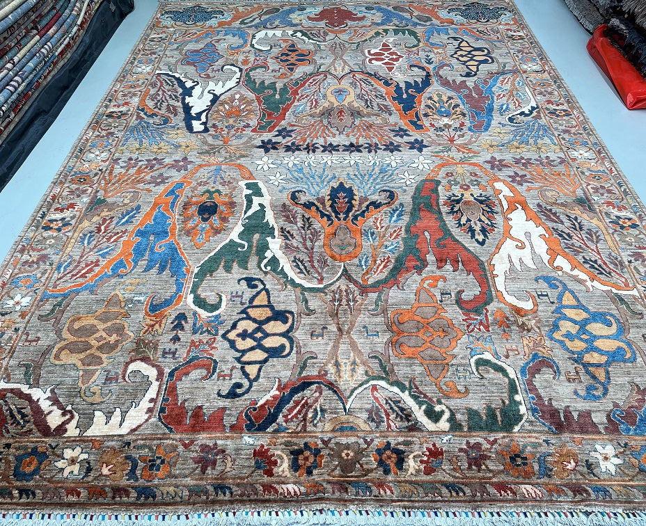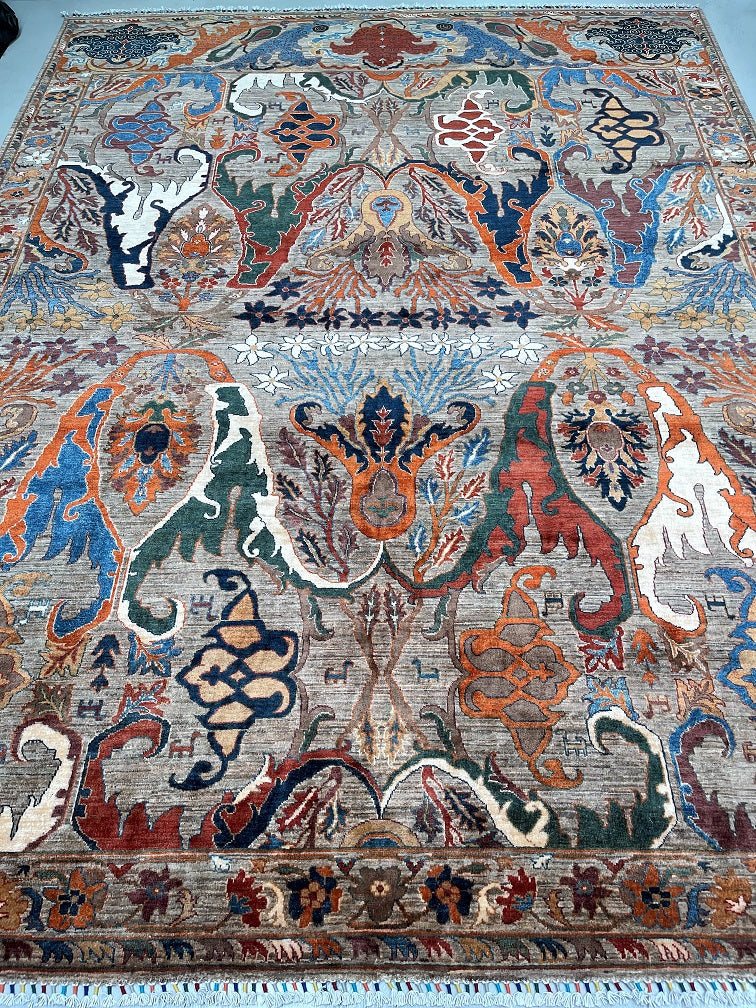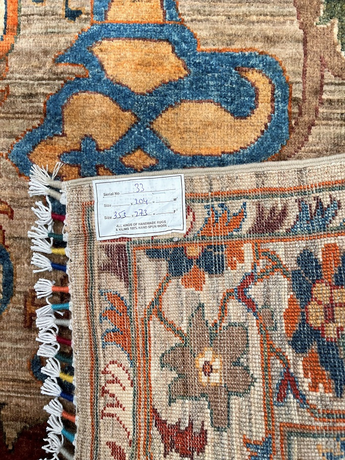 Superb Large Room Size Authentic Hand Knotted Afghan Chobi Rug. Above All It Has A Pure Hand Spun Wool Pile On Cotton Base. Light Brown, Beige, Blue, Green, Gold And Orange Tone Dyed Using Vegetable Roots (Vegetable Dyes). Last of True Woven Nomadic Art.