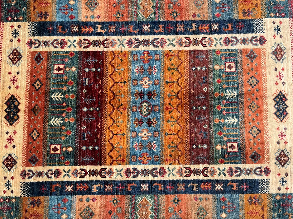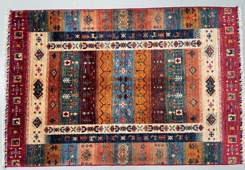 Genuine Hand Knotted Afghan Super Kazak Gabbeh Rug. Above All It Has A Pure Hand Spun Wool Pile On Cotton Base. Multi-Color Tone Dyed Using Traditional Methods (Vegetable Dyes). Last of True Woven Nomadic Art.