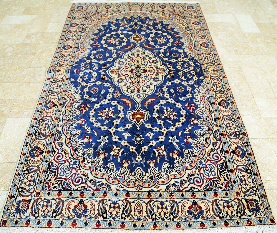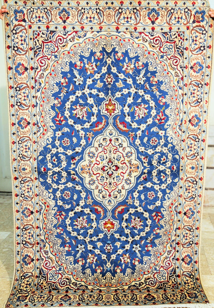 Superfine Silk inlaid Persian Nain Rug 205x125cm Superb Quality Coffee Table Size Authentic Persian Nain Carpet. Above All It Is Hard To Get This Quality Hand Made Rug. It Also Has Lamb’s Wool And Silk Inlaid On Cotton Base. French Blue And Beige...