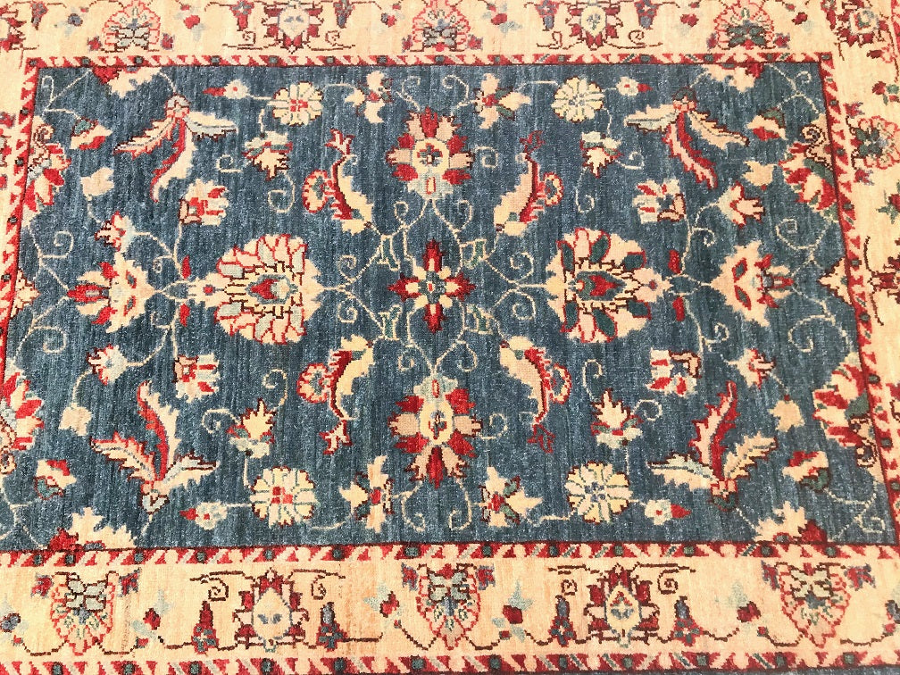 Coffee Table Size Hand Spun Wool Afghan Chobi Rug. Above All It Is Pure Hand Spun Wool Pile On Cotton Base. Greenish Blue Tone Dyed Using Traditional Methods (Vegetable Dyes). Last of True Woven Nomadic Art.
